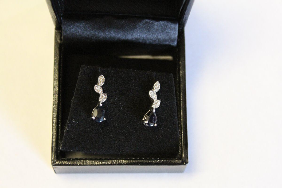NEW SAPPHIRE & DIAMOND STERLING SILVER EARRINGS 1.00 CARAT SAPPHIRE INCLUDES $285 CERTIFICATE