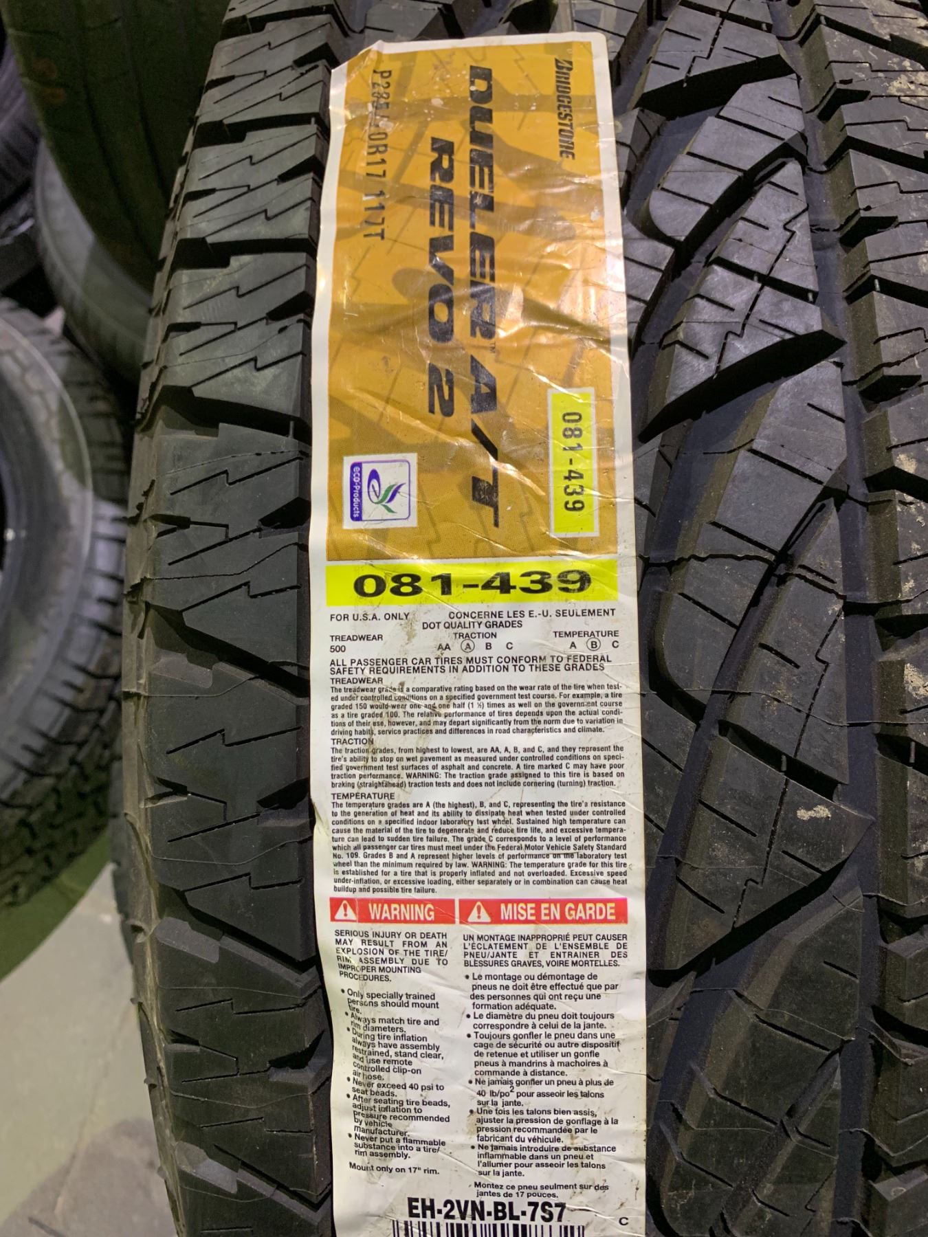 *NEW* SET OF 2 BRIDGESTONE DUELER A/T REVO 2 P285/70R17 117T TIRES **$6.50/TIRE ECO-LEVY WILL BE CHARGED**