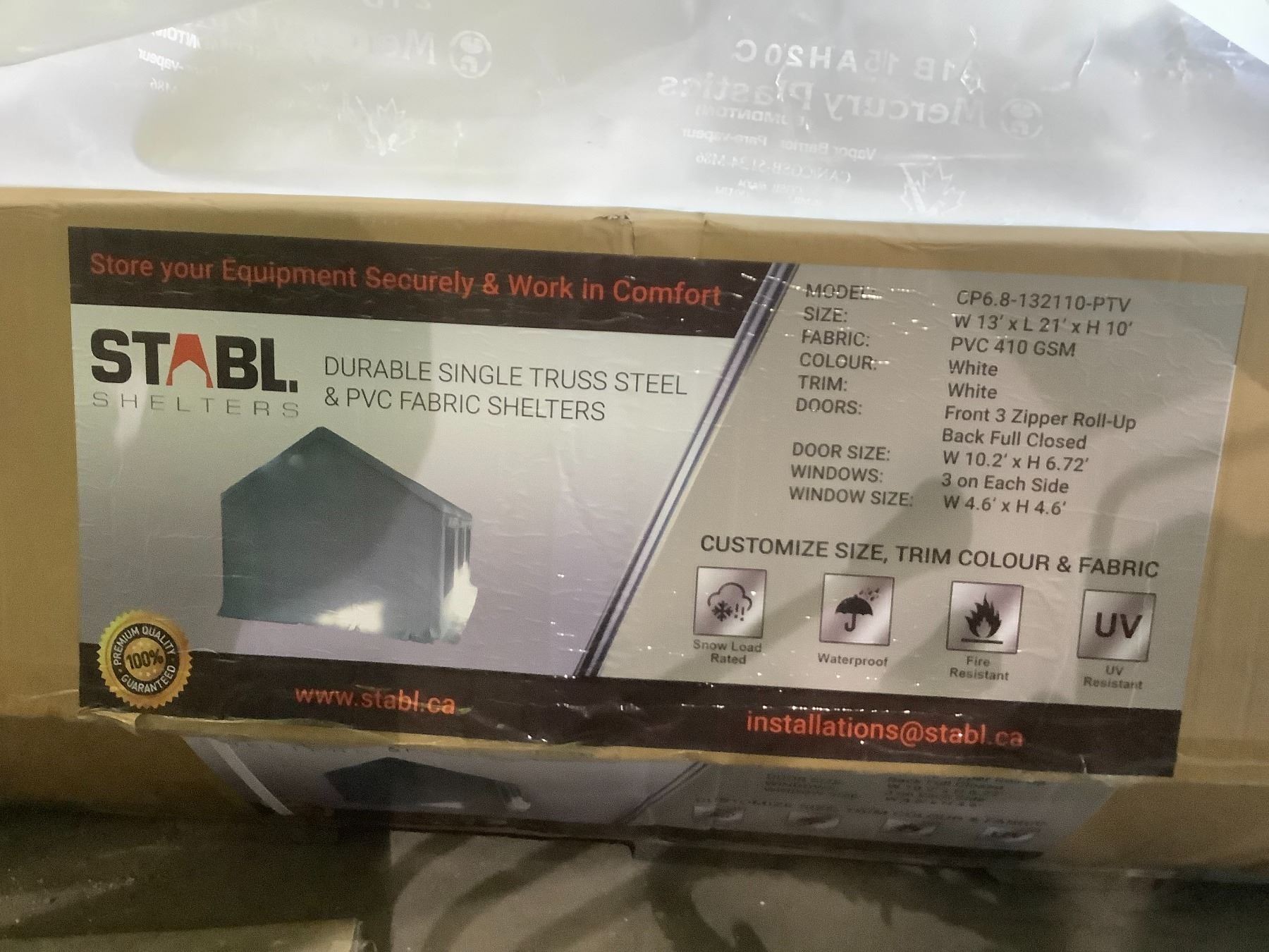 *NEW* STABL SHELTERS DURABLE SINGLE TRUSS STEEL & PVC FABRIC SHELTER MODEL CP6.8-132110-PTV W 13' X L 21' X H 10' COLOR WHITE