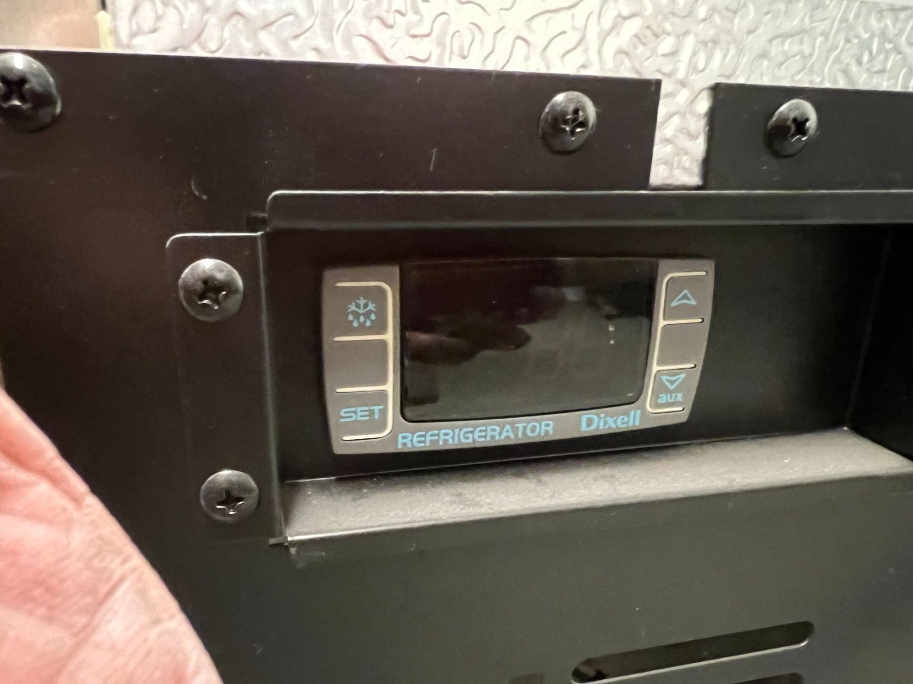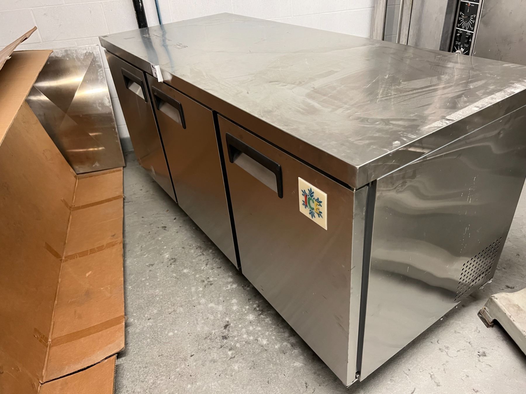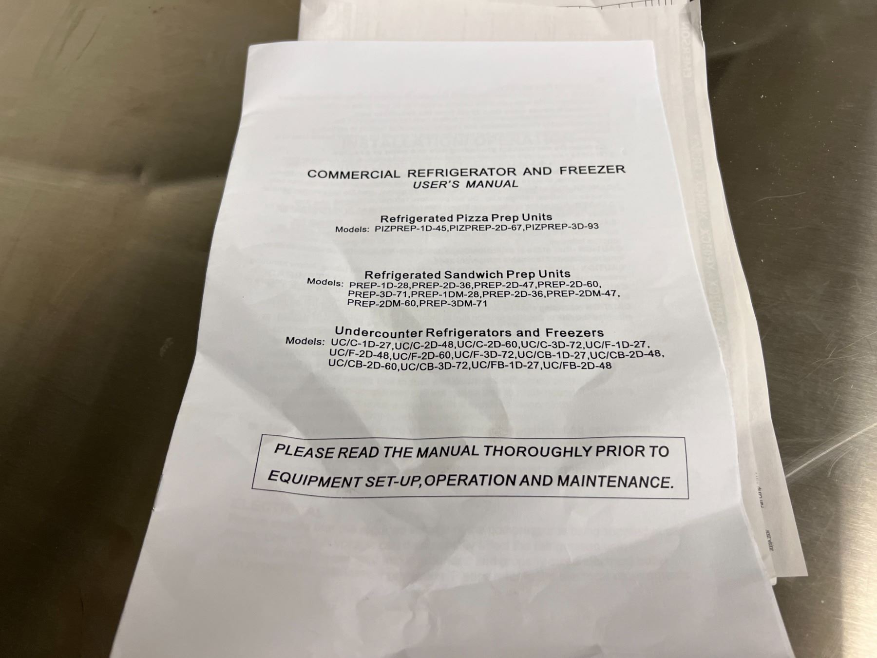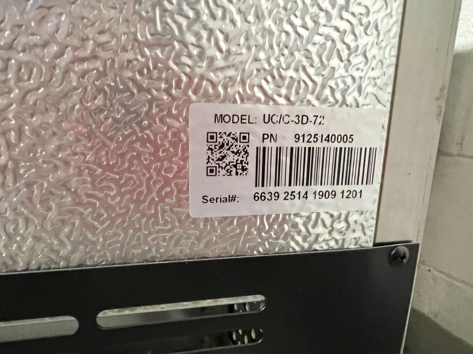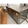 NEW STAINLESS 3 DOOR REFRIGERATOR/FREEZER CABINET. NOTE STAINLESS TOP HAS DAMAGE. MODEL UC/C-3D-72. WITH MANUAL. ON WHEELS. 72"X30"