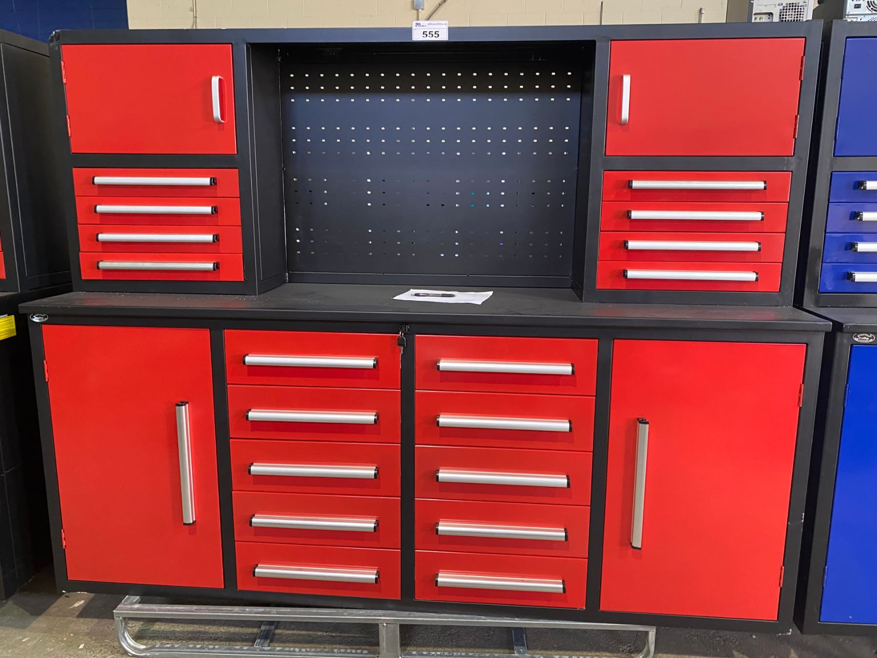 NEW STEELMAN 7' WORK BENCH WITH 18 DRAWERS, LOCK AND ANTI-SLIP INNERS *DENTED TOP*