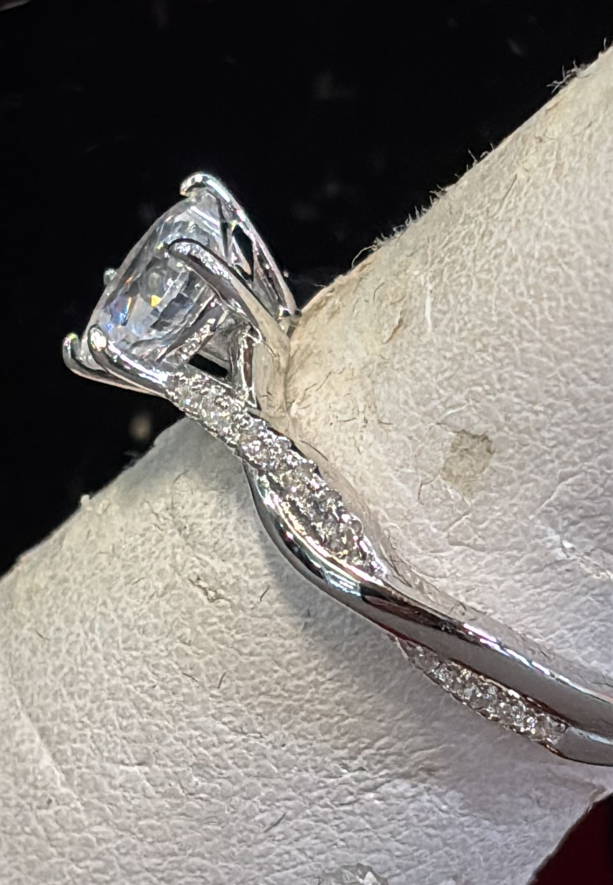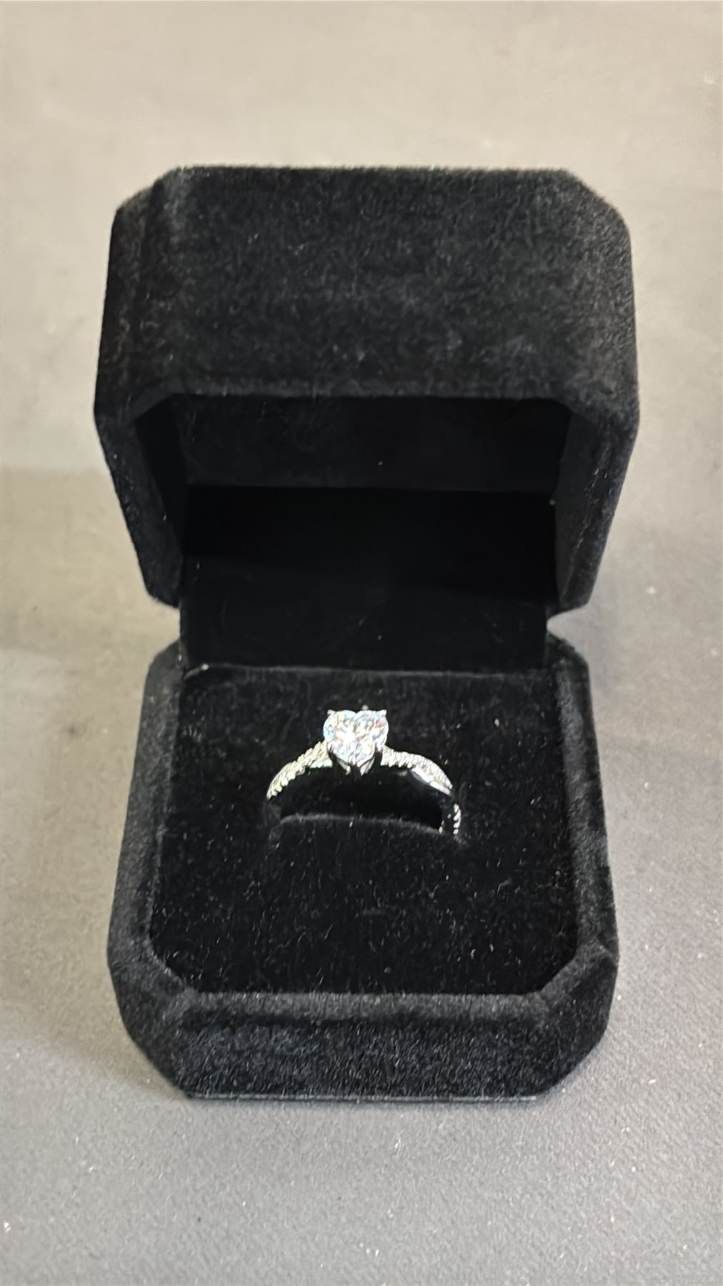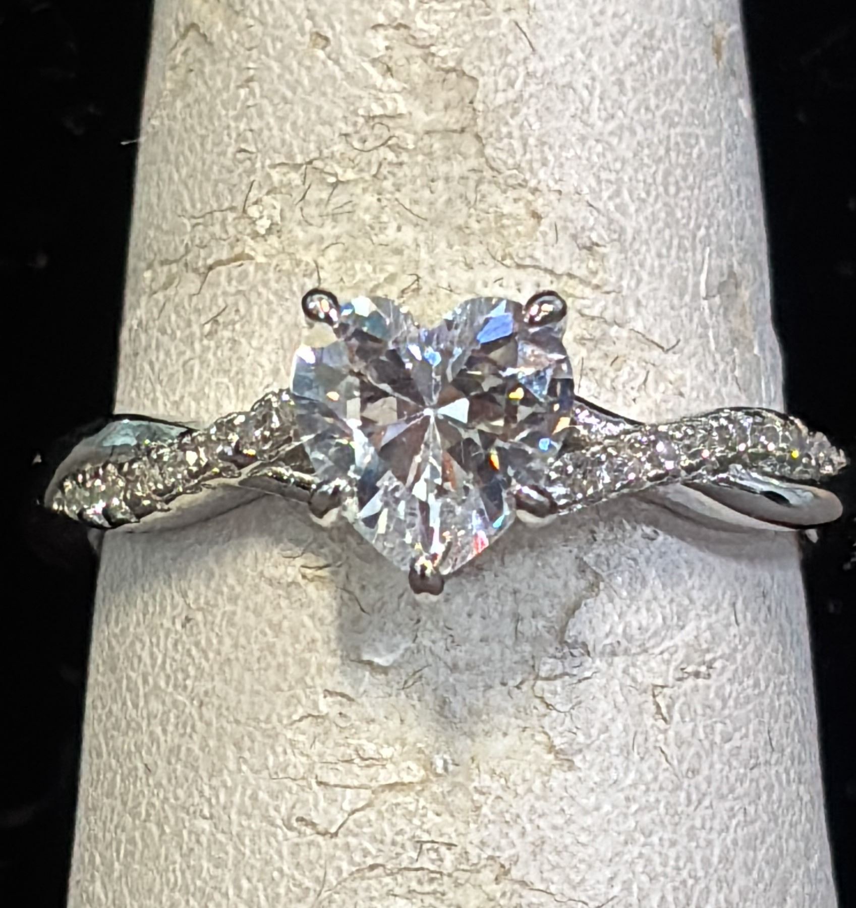 *NEW* STERLING SILVER 1CT HEART CUT SIMULATED DIAMOND (CZ) TWIST RING: SIZE 7.5 MOUNTED IN 925 STERLING SILVER WITH WHITE GOLD OVERLAY
