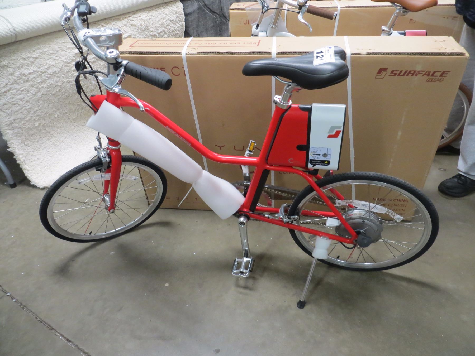 NEW SURFACE 604 ELECTRIC BIKE WITH CHARGER AND ACC REMOVABLE BATTERY PACK WITH DOWNLOADABLE FITNESS PROGRAM (WOMENS RED)