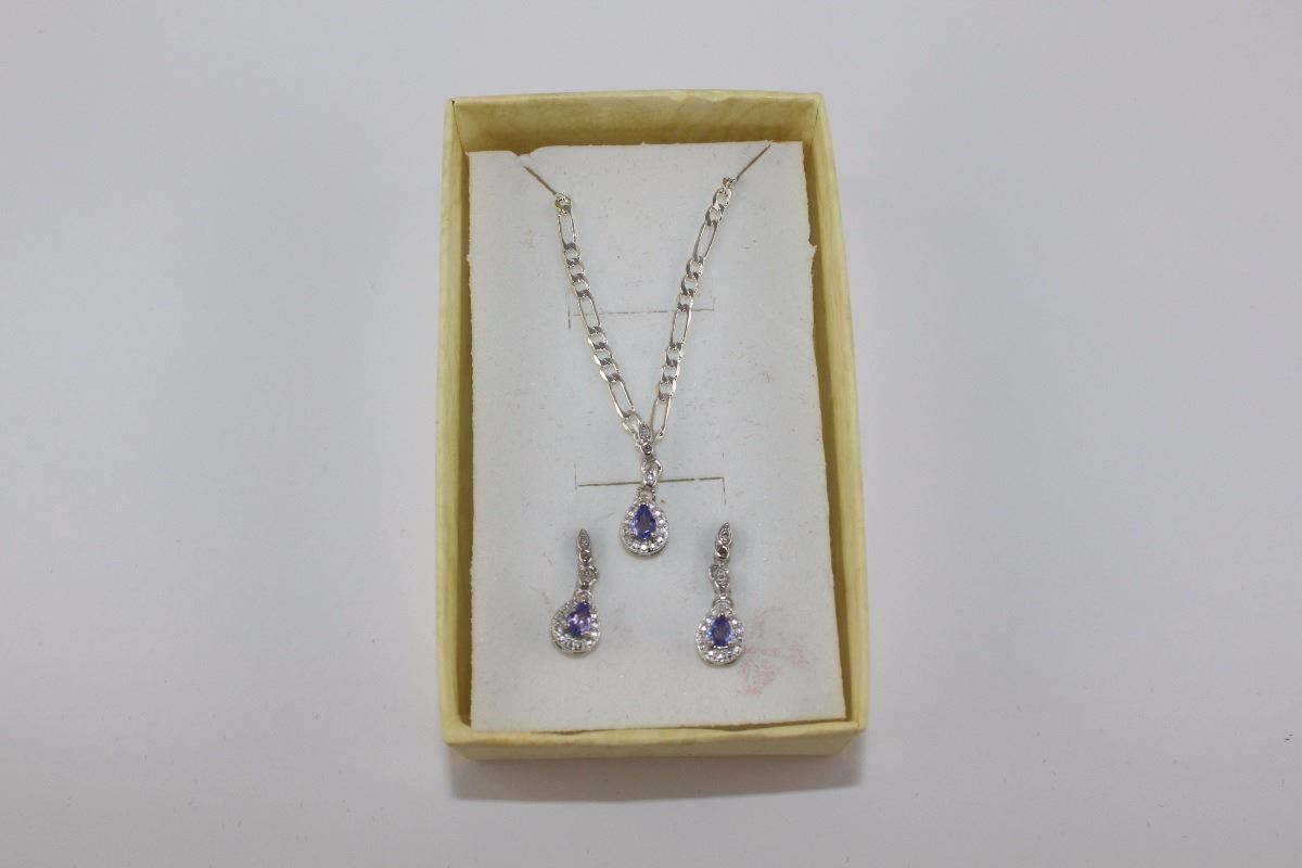 NEW TANZANITE & DIAMOND EARRING & NECKLACE SET, VS CLARITY, $500 CERTIFICATE