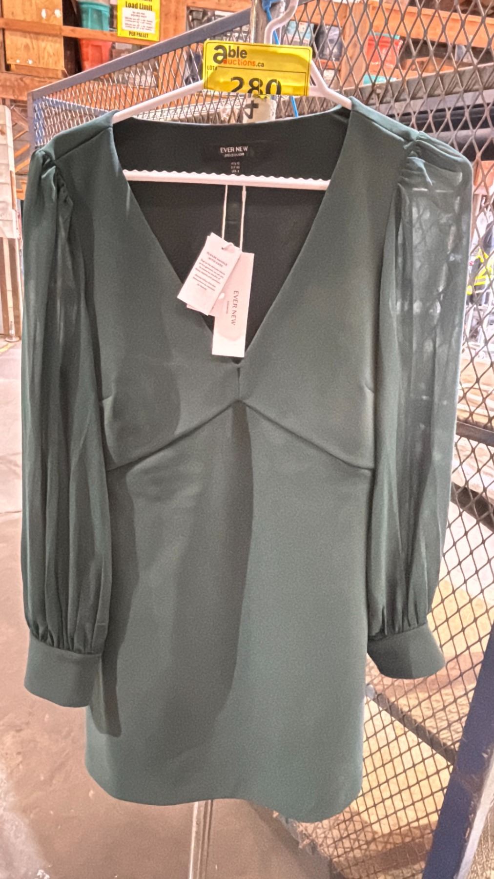 *NEW WITH TAGS* EVERNEW DARK GREEN ADELAIDE V NECK MINI DRESS *SIZE 8*