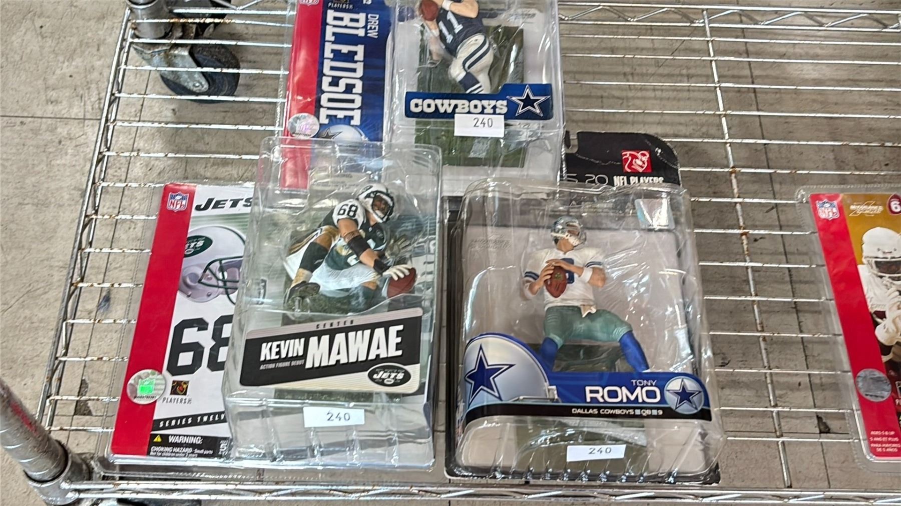 NFL ACTION FIGURES - COWBOYS DREW BLEDSOE, COWBOYS TONY ROMO & JETS KEVIN MAWAE