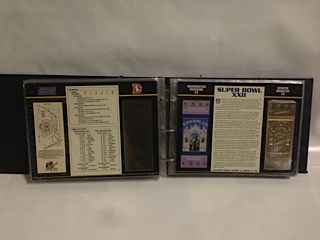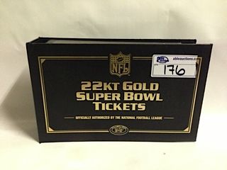 NFL WILLABEE & WARD 22 KT GOLD SUPERBOWL TICKET COLLECTOR SET FEATURING GOLD EMBOSSED TICKETS AND GAME TICKETS FROM SUPERBOWL 1 THROUGH SUPERBOWL XXXVIII