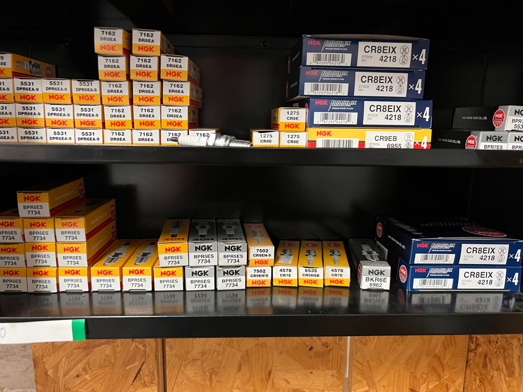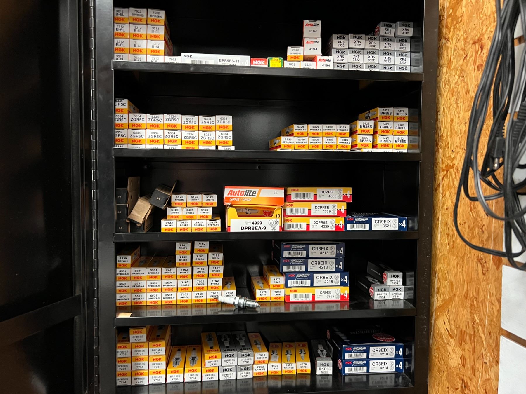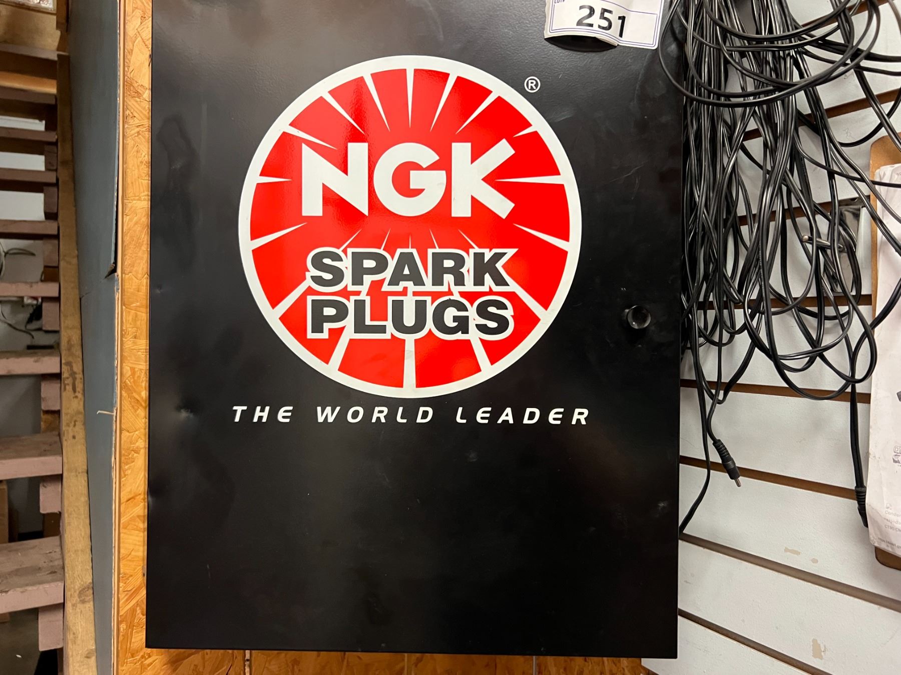 NGK SPARK PLUG CABINET WITH APPROX 224 SPARK PLUGS
