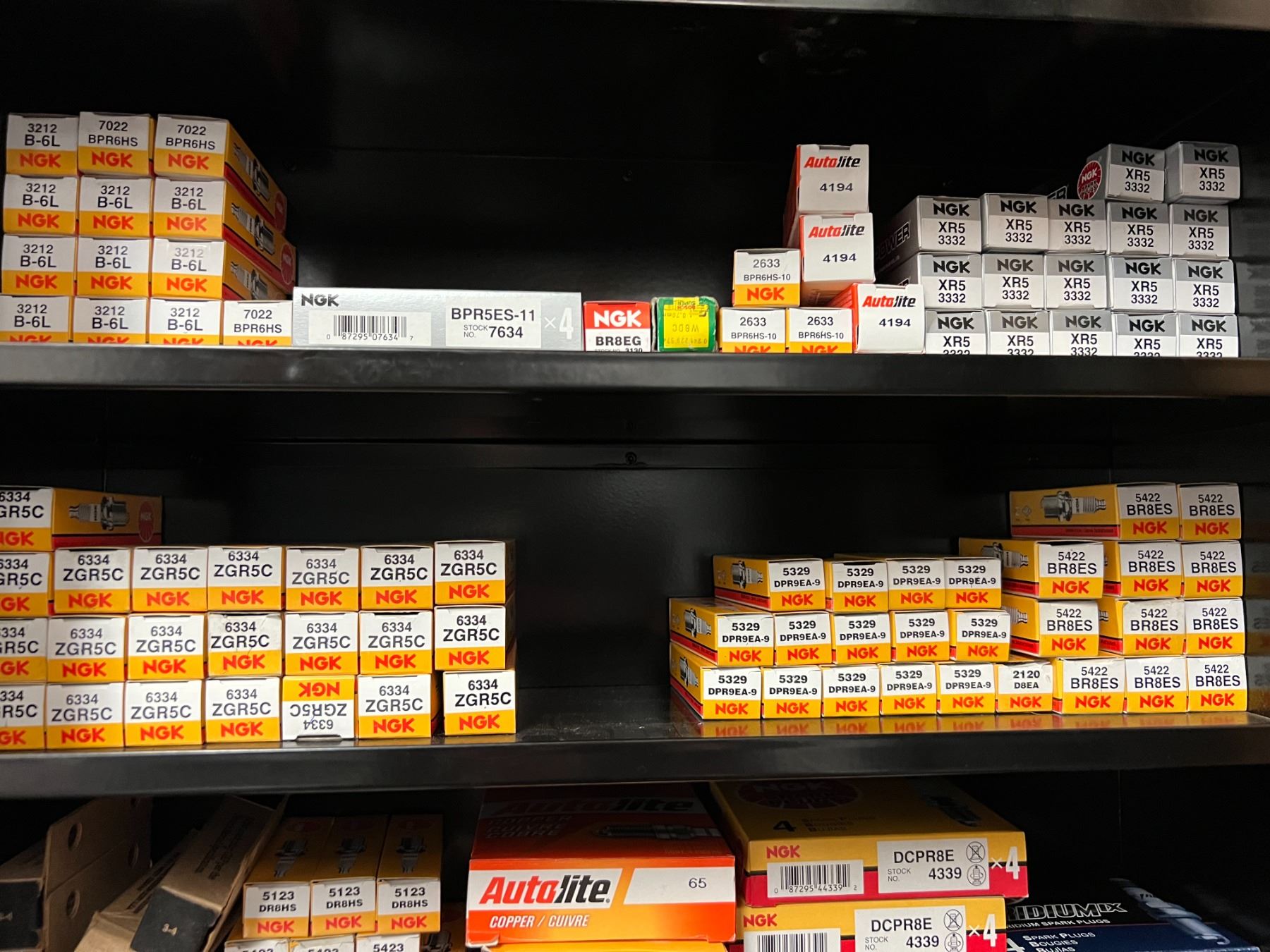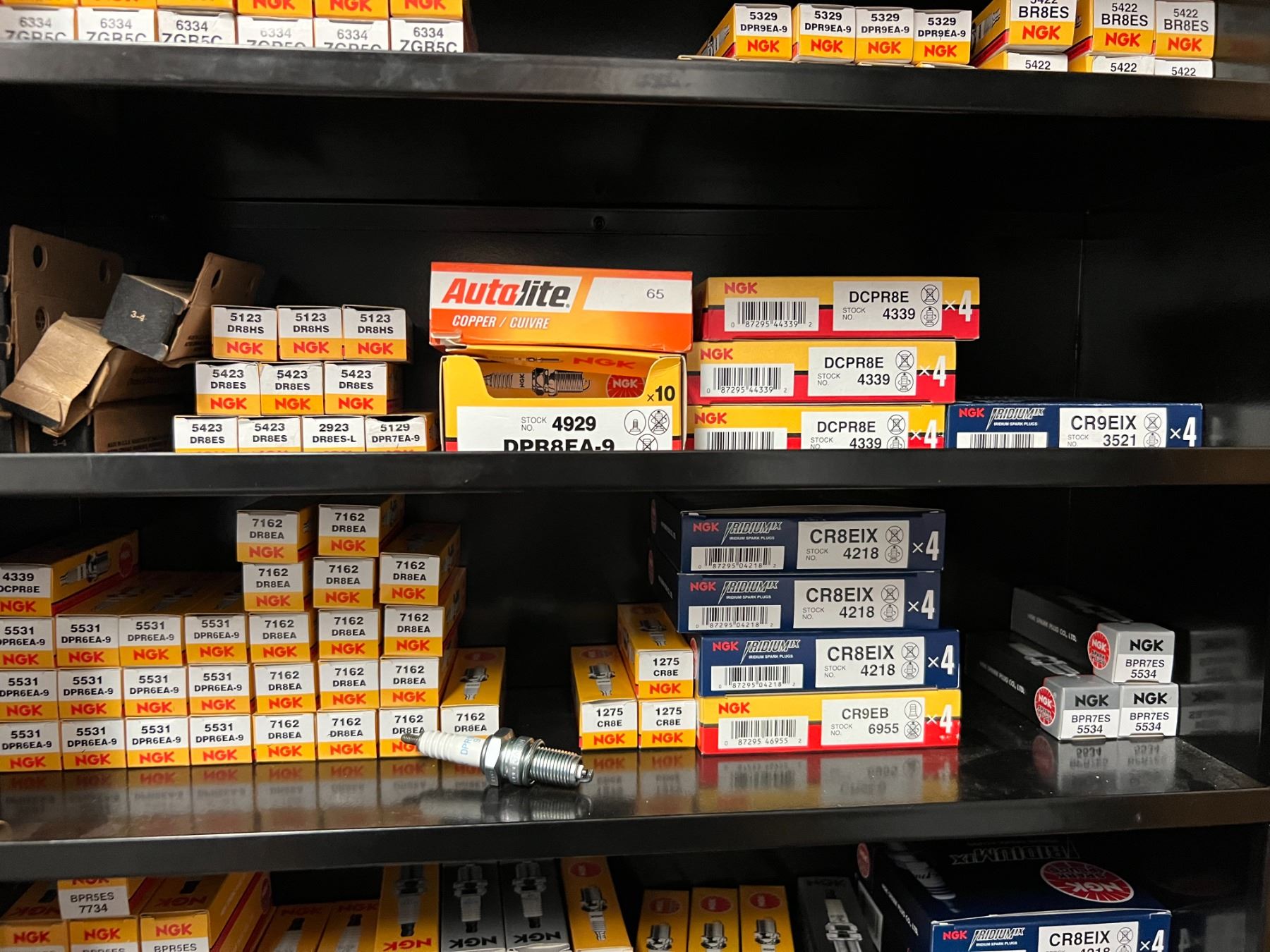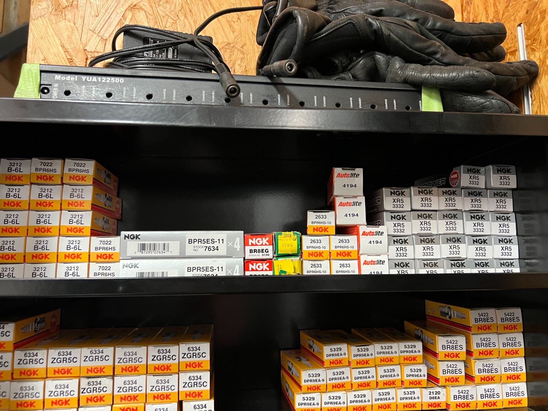 NGK SPARK PLUG CABINET WITH APPROX 224 SPARK PLUGS