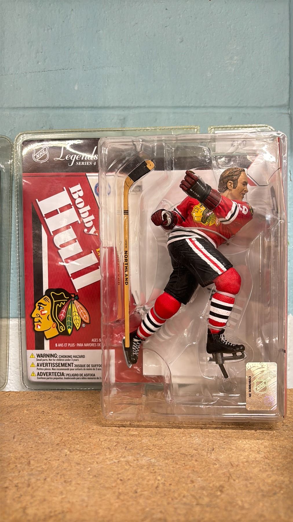 NHL ACTION FIGURES - CHRIS CHELIDS, BOBBY HULL, NIKOLAI KHABIBULIN, TOM THOMAS & ROBERTO LUONGO