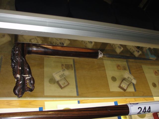 NICELY CRAFTED ORIENTAL EXOTIC WOOD WALKING STICK WITH CARVED DRAGON HEAD HANDLE AND HIDDEN DAGGER