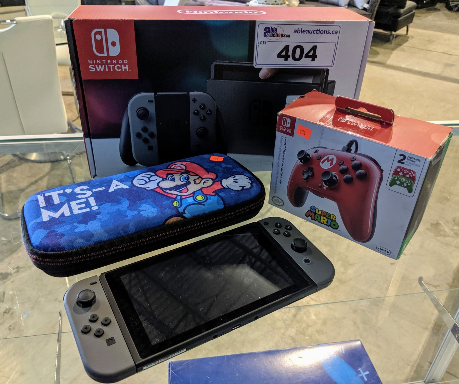 NINTENDO SWITCH WITH MARIO CASE AND WIRED CONTROLLER