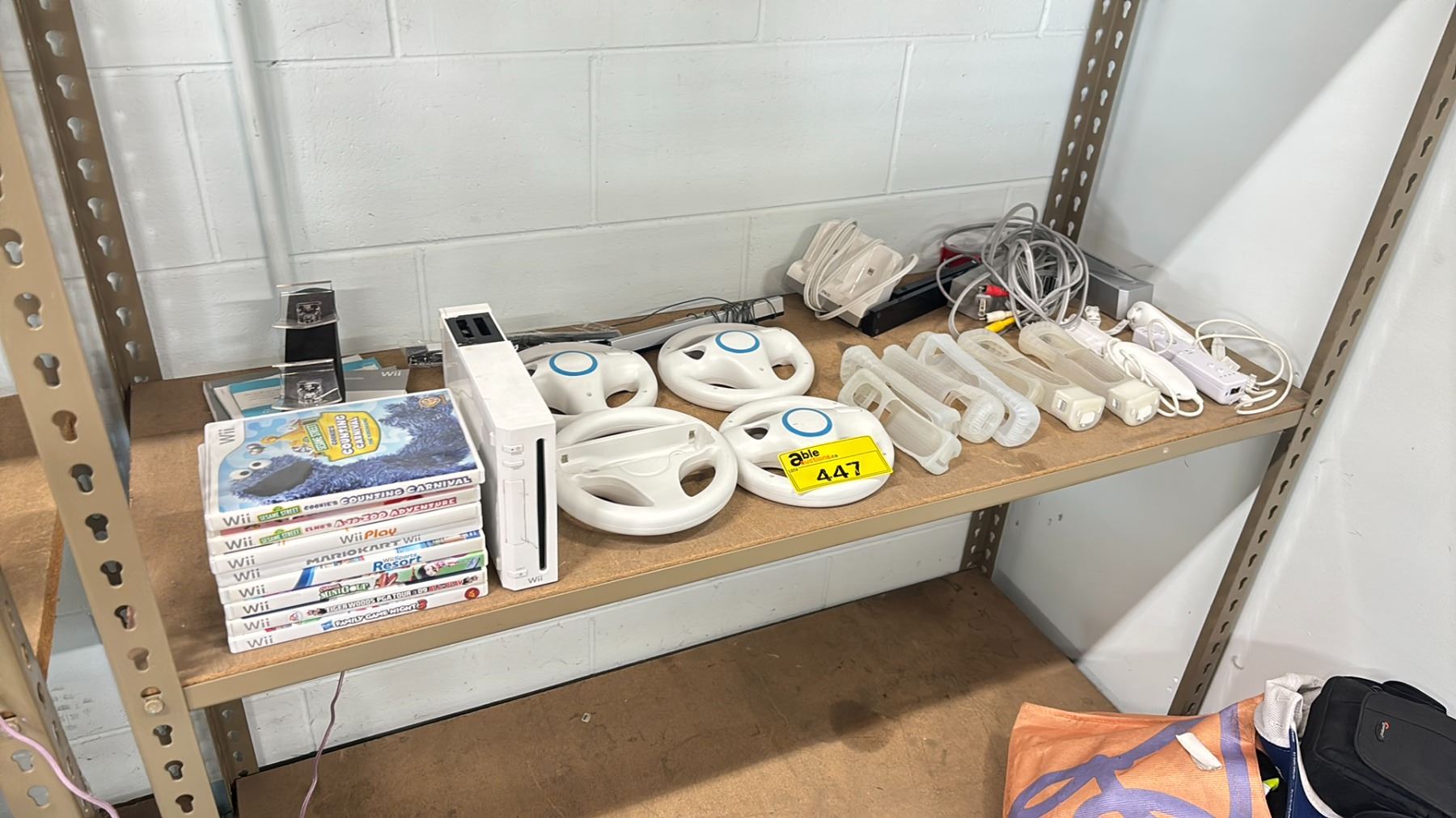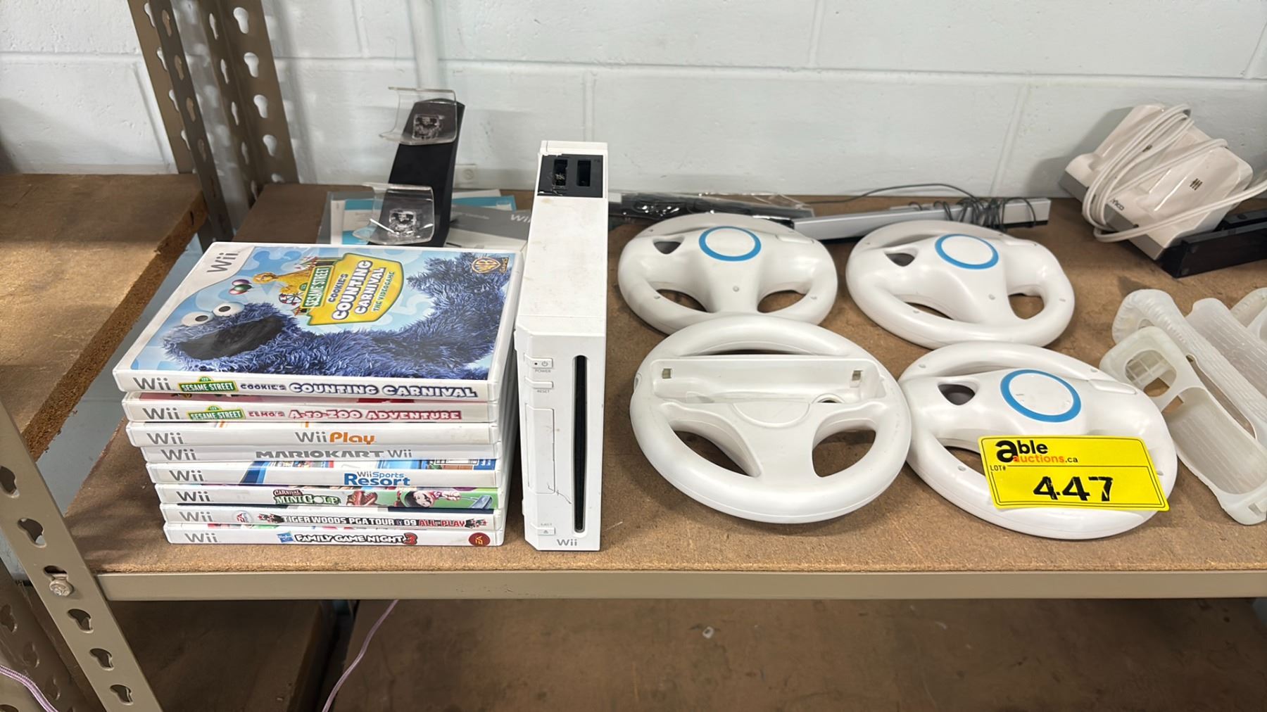 NINTENDO WII WITH POWER CORD , CABLES, CONTROLLER, ASSORTED GAMES & MORE