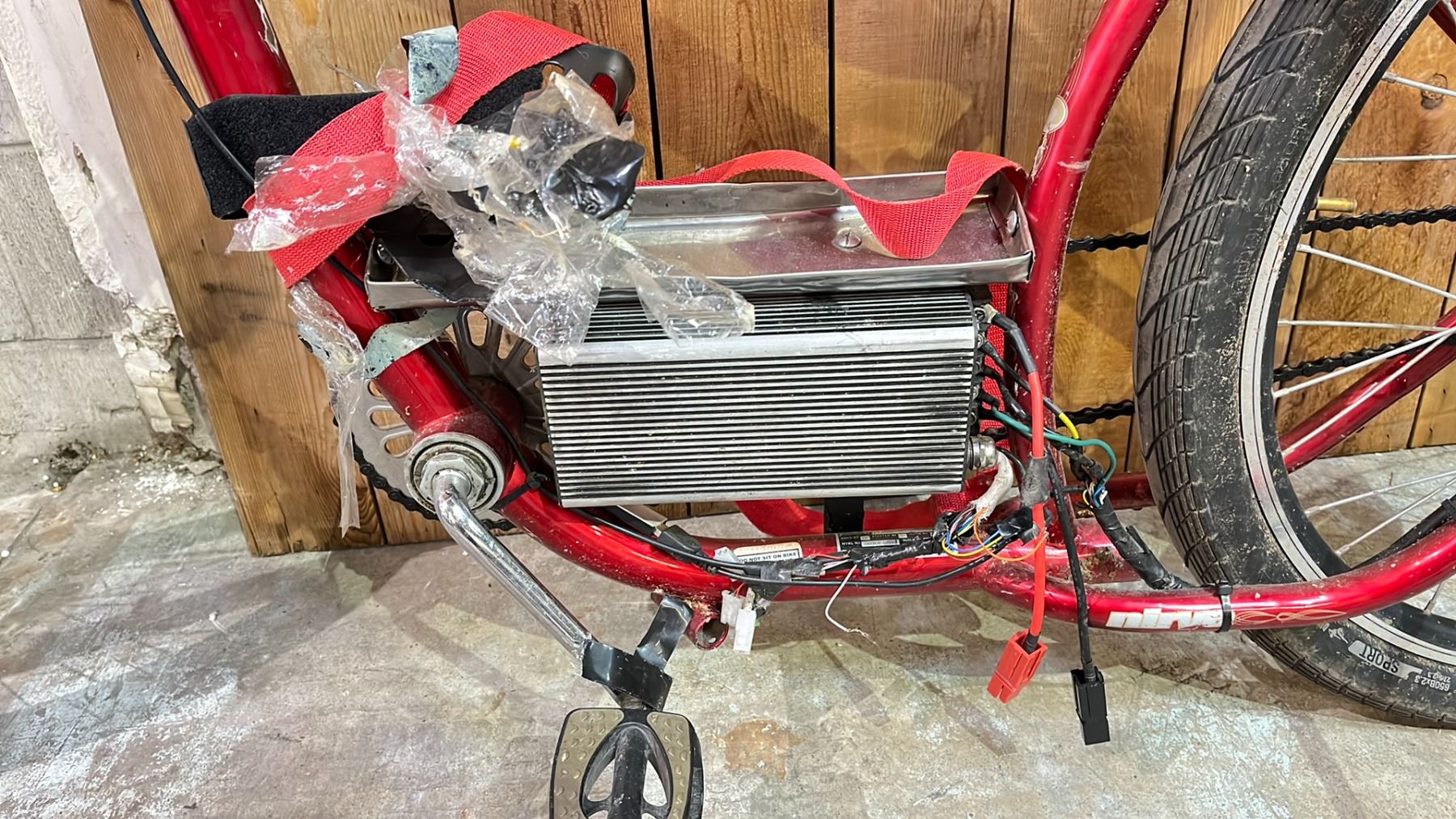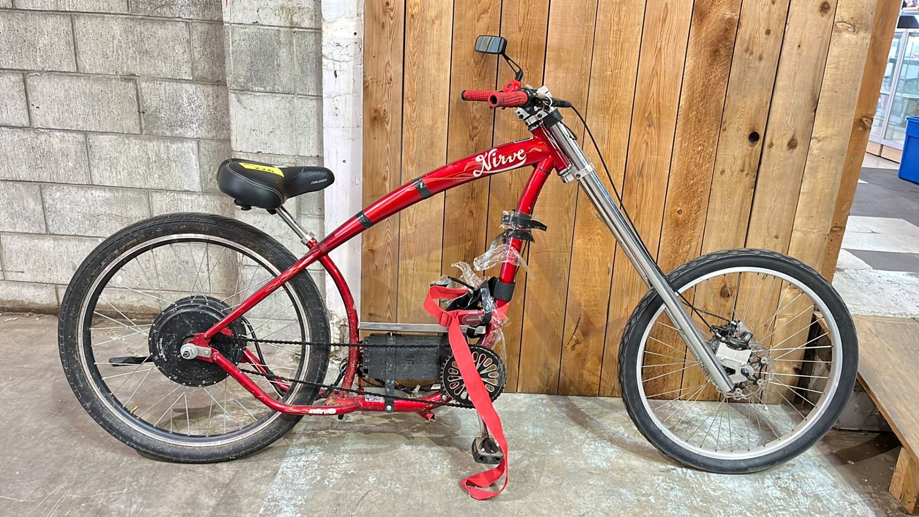 NIRVE RED CHOPPER STYLE E BIKE *NO KEY, NO CHARGER, WORKING CONDITION UNKNOWN, MISSING PARTS*