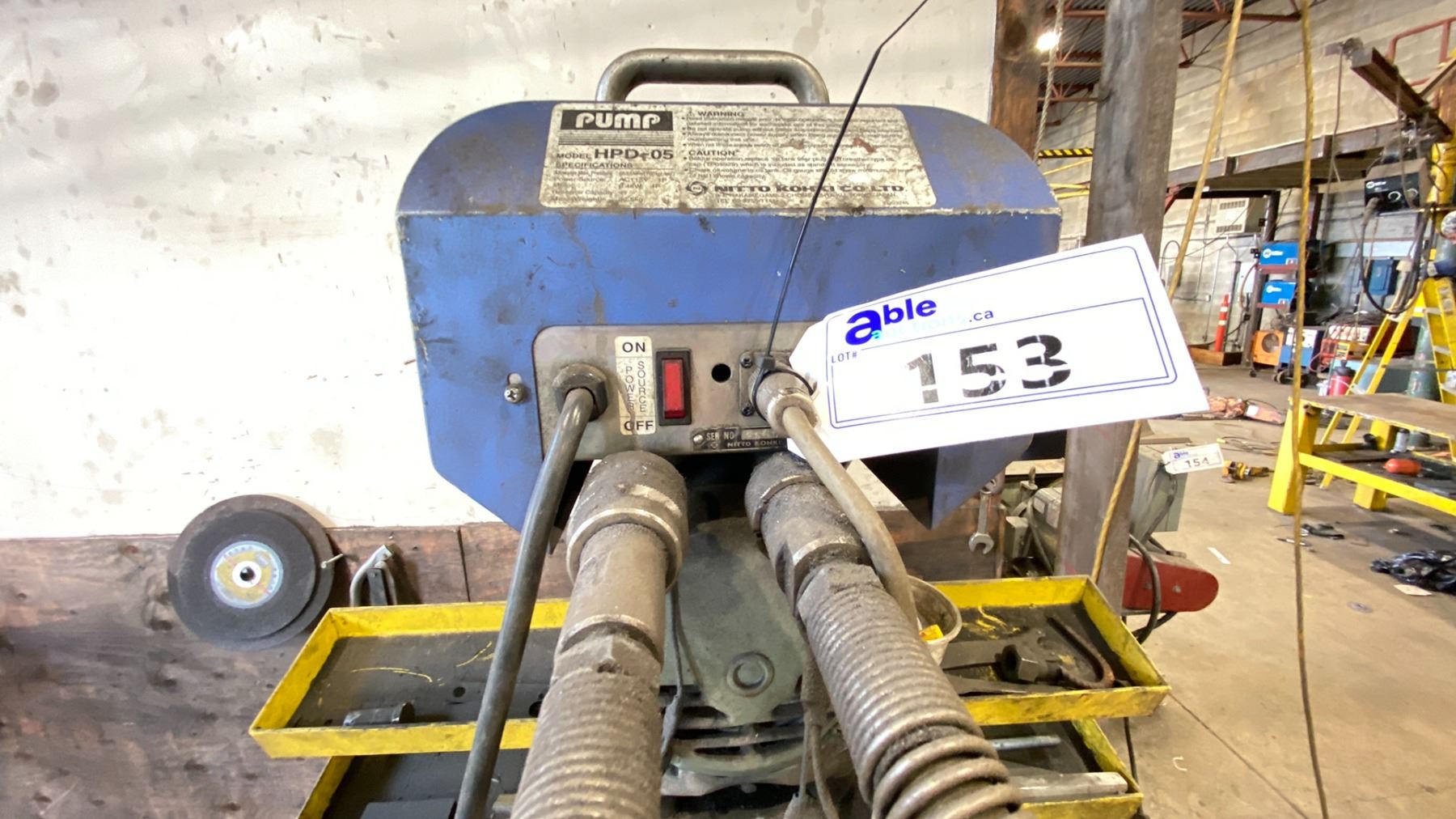 NITTO KOHKI HPD-05 HYDRAULIC PUMP & NITTO KOHKI HYDRAULIC PUNCH WITH METAL WORK STAND
