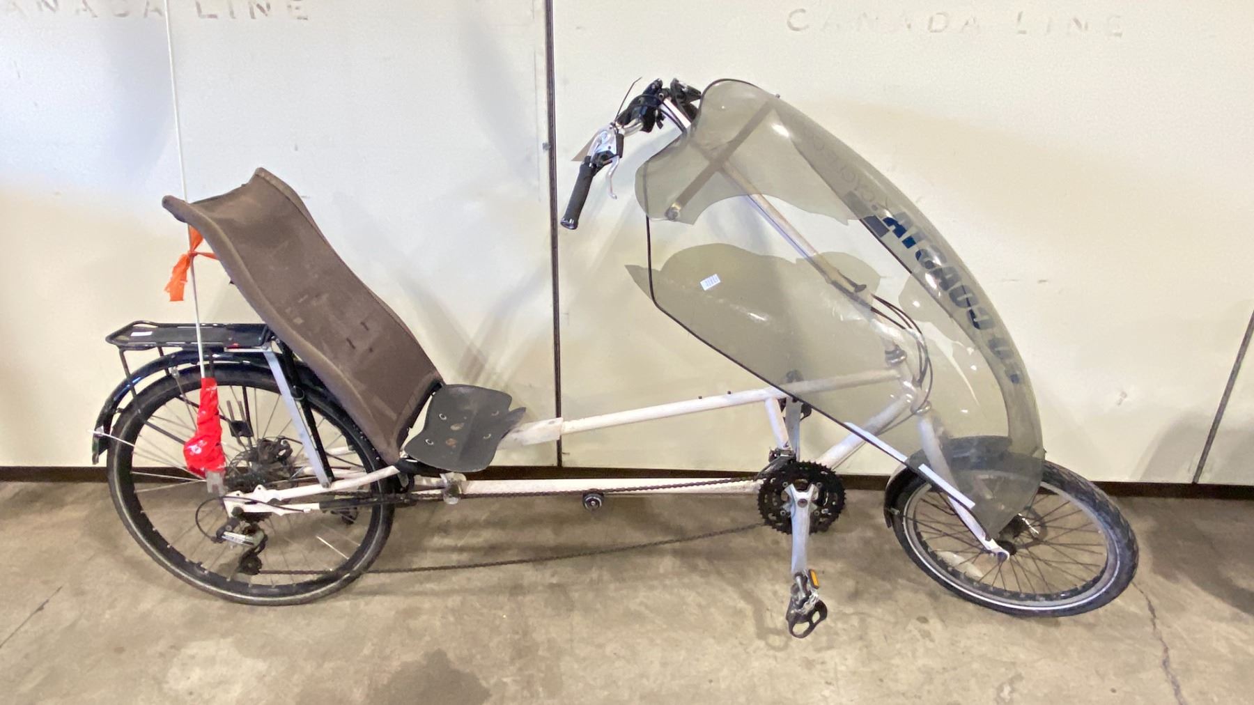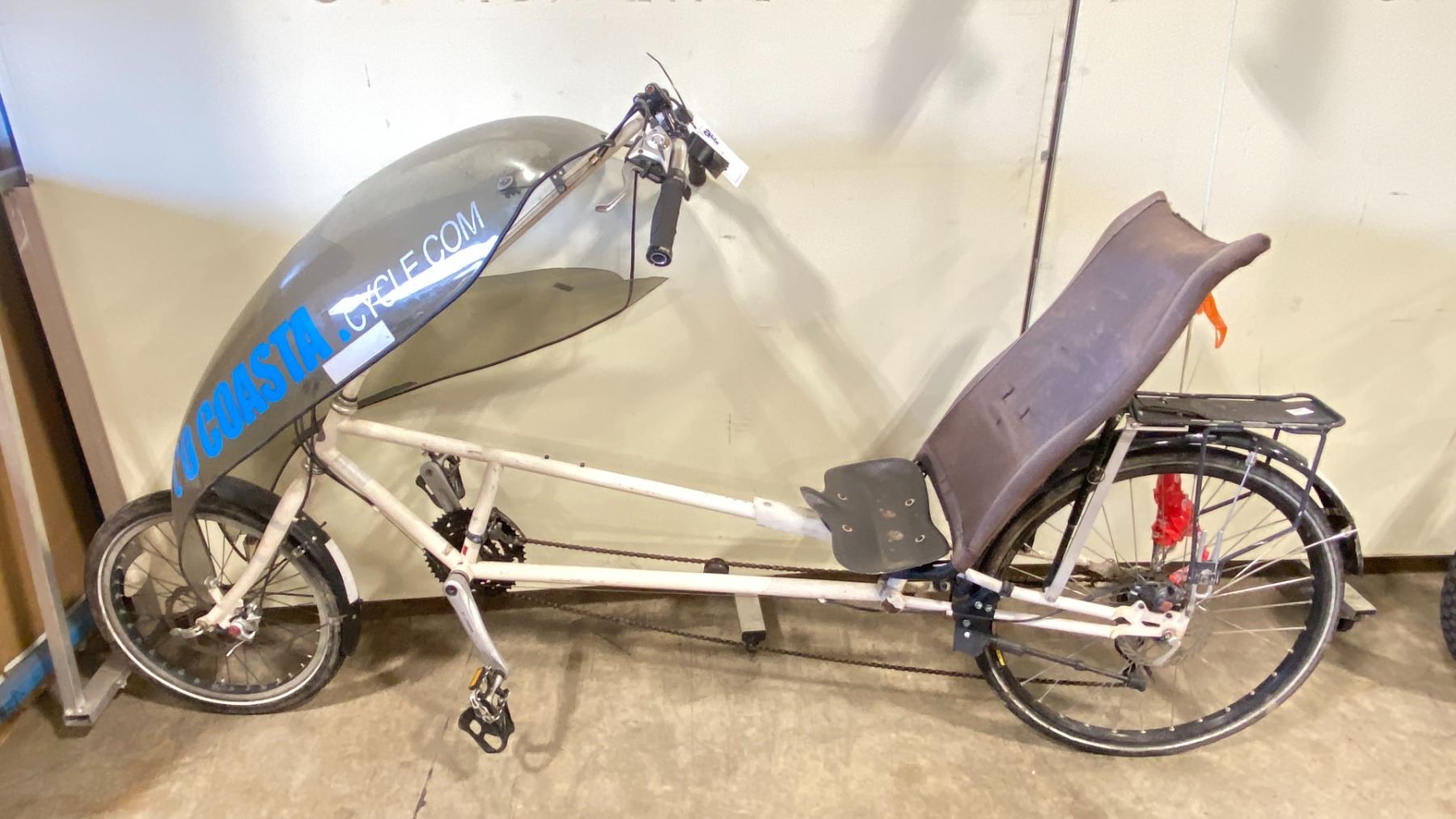 NO NAME 21 SPEED WHITE RECUMBENT BICYCLE * DAMAGED WINDSHIELD *
