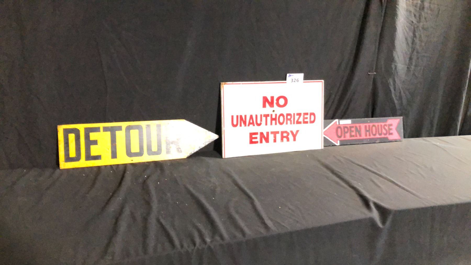 "NO UNAUTHORIZED ENTRY", "DETOUR" DOUBLE-SIDED AND "OPEN HOUSE" SIGNS