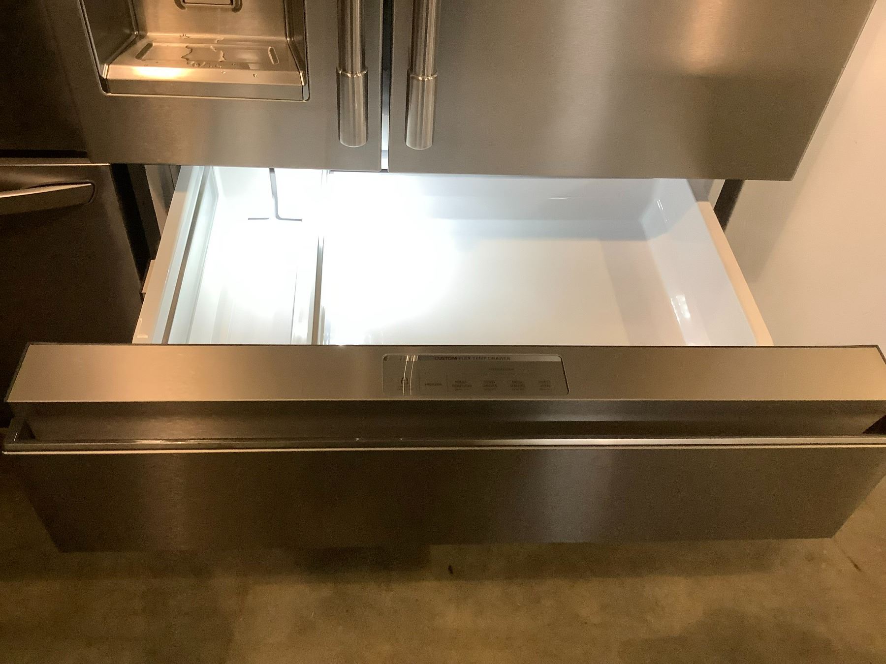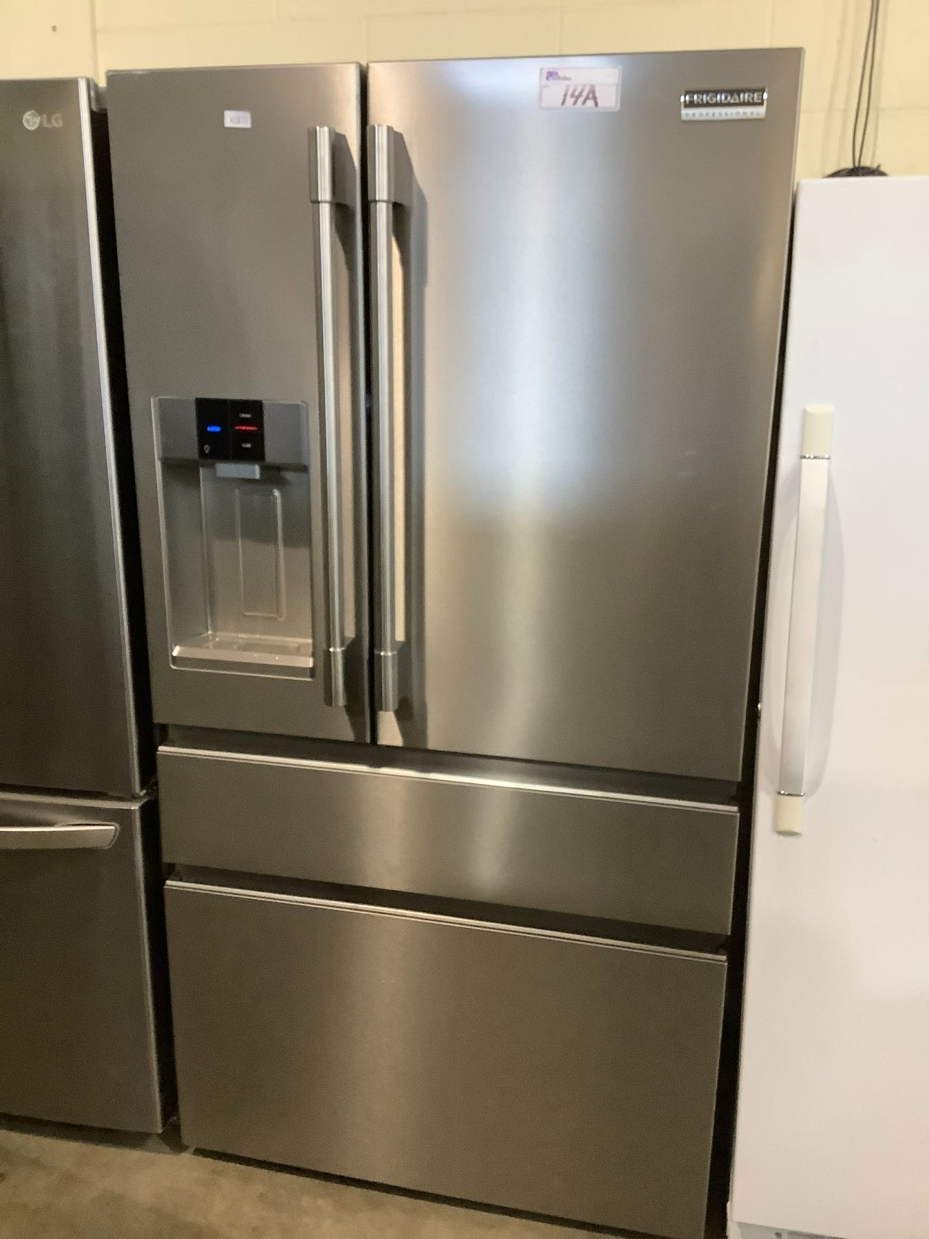 *NON WORKING* FRIGIDAIRE PROFESSIONAL STAINLESS STEEL FRENCH DOOR FRIDGE, WITH ROLLOUT DRINK COOLER, ROLLOUT & FREEZER & ICE/WATER DISPENSER
