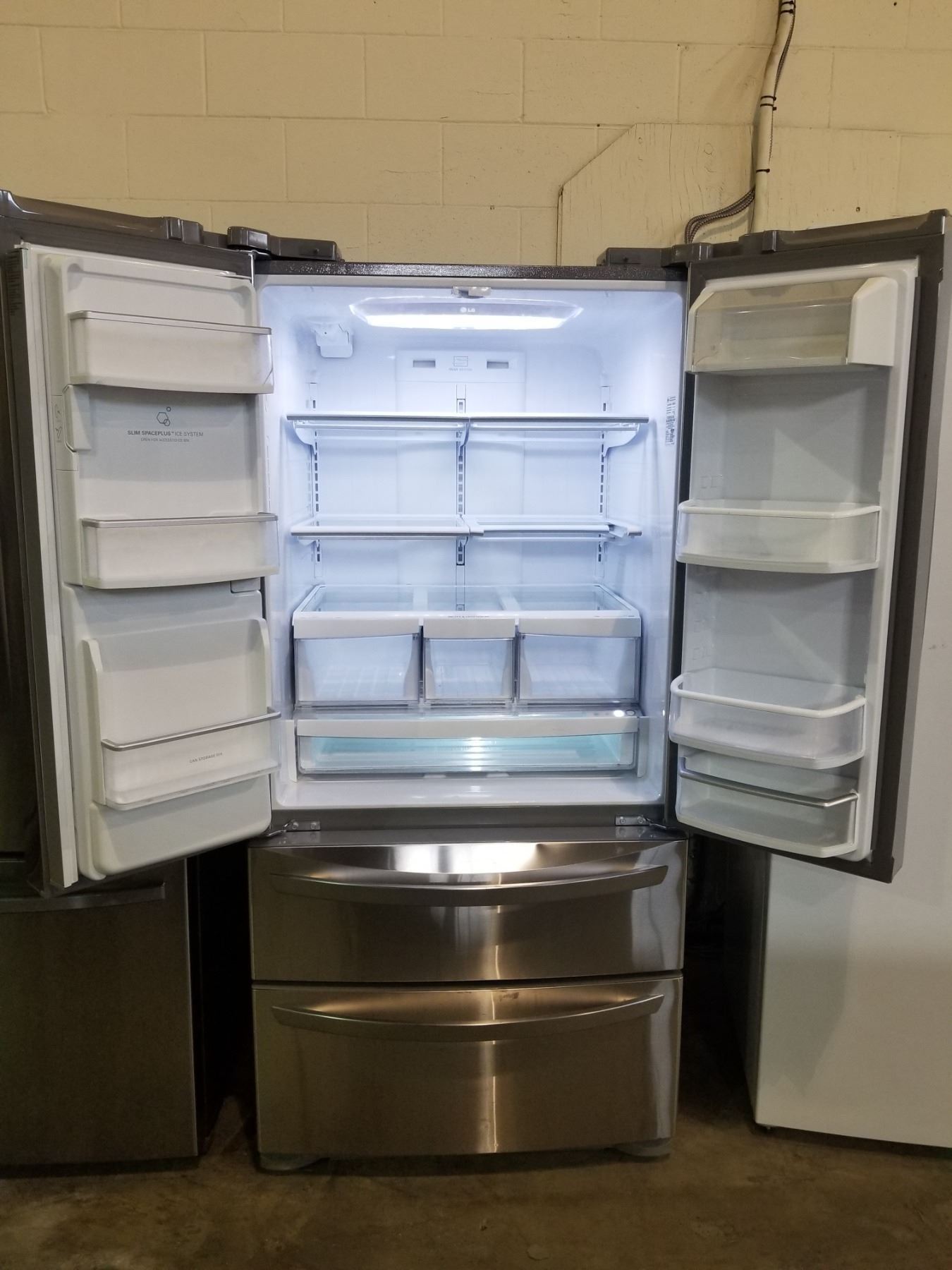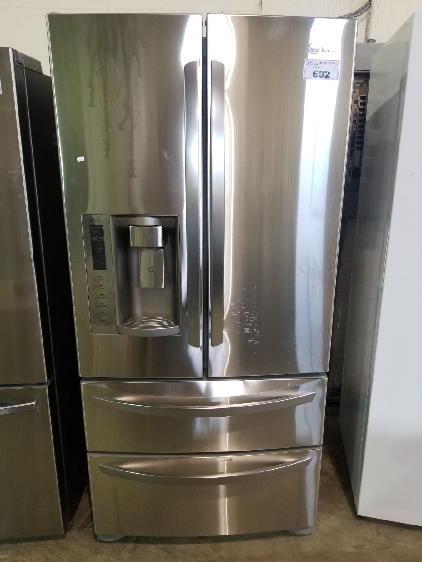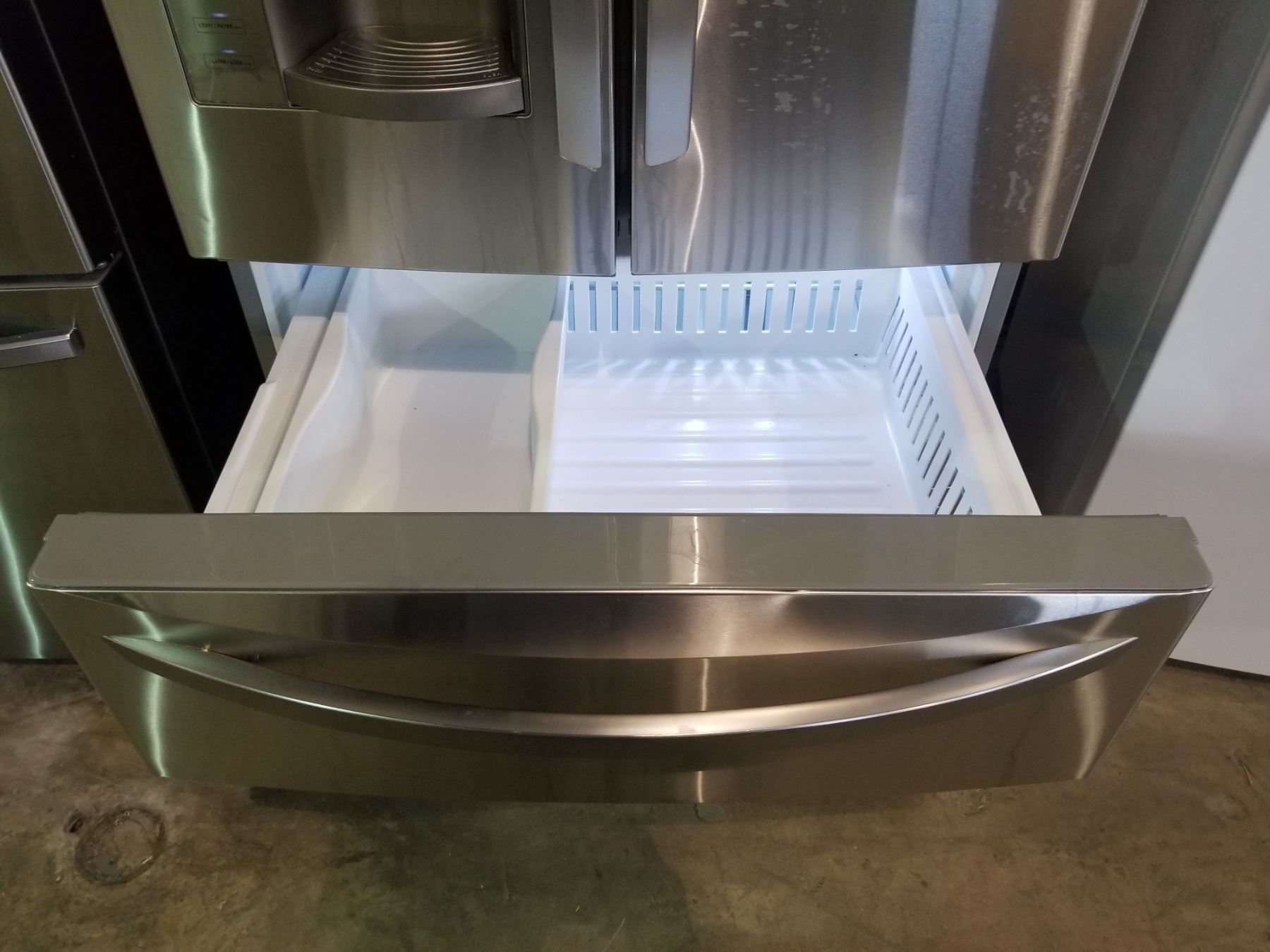 *NON WORKING* LG S/S FRIDGE /W ROLL OUT FREEZER & WATER/ICE DISPENSER MODEL LMX25988ST/00 (SMALL DENT ON FREEZER)