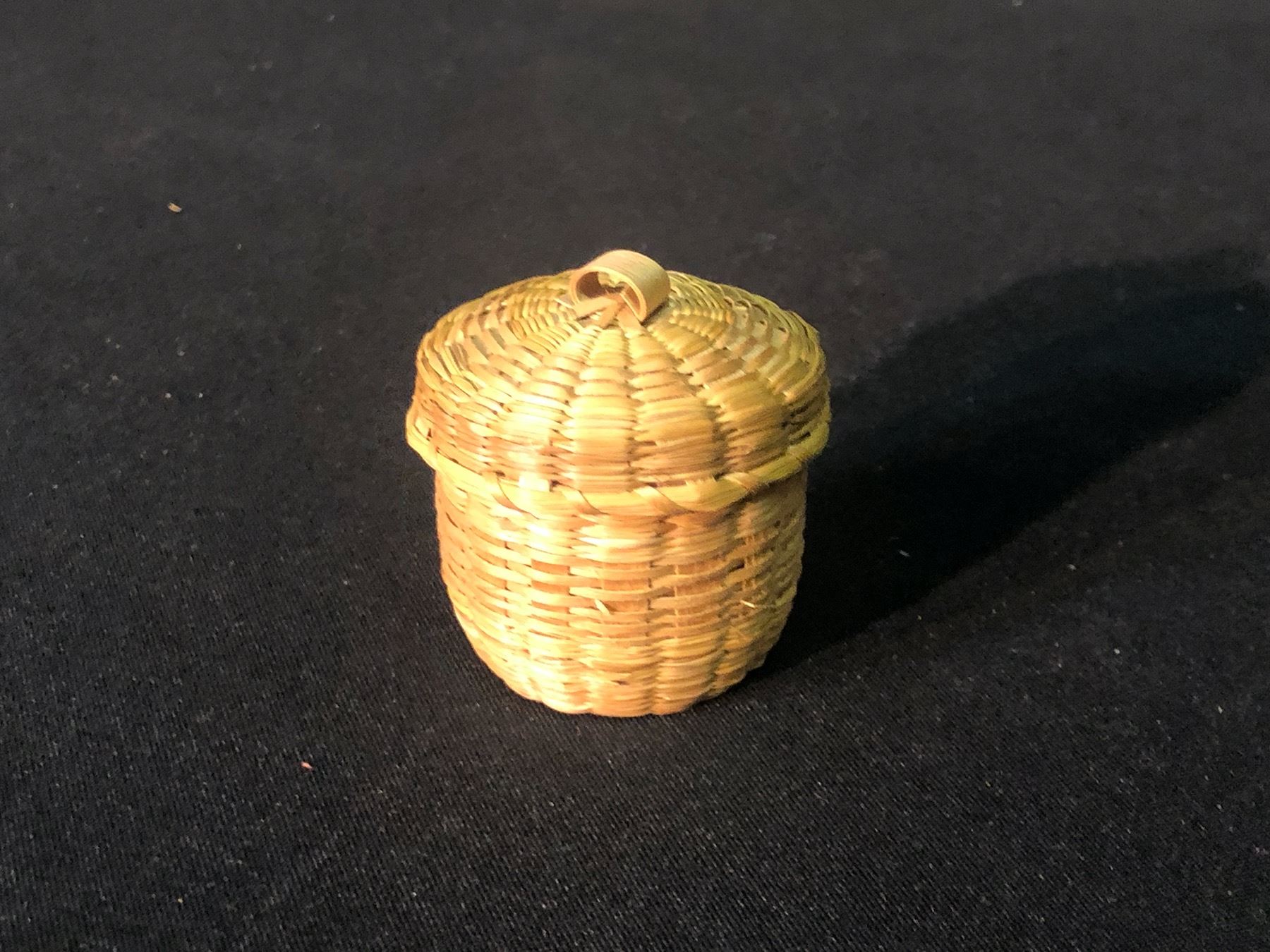 NOOTKA NATIVE HAND WOVEN BASKET, C. EARLY 1900S, APPROX. 11" WIDE, AND SMALL HAND WOVEN LIDDED BASKET, APPROX. 2" WIDE