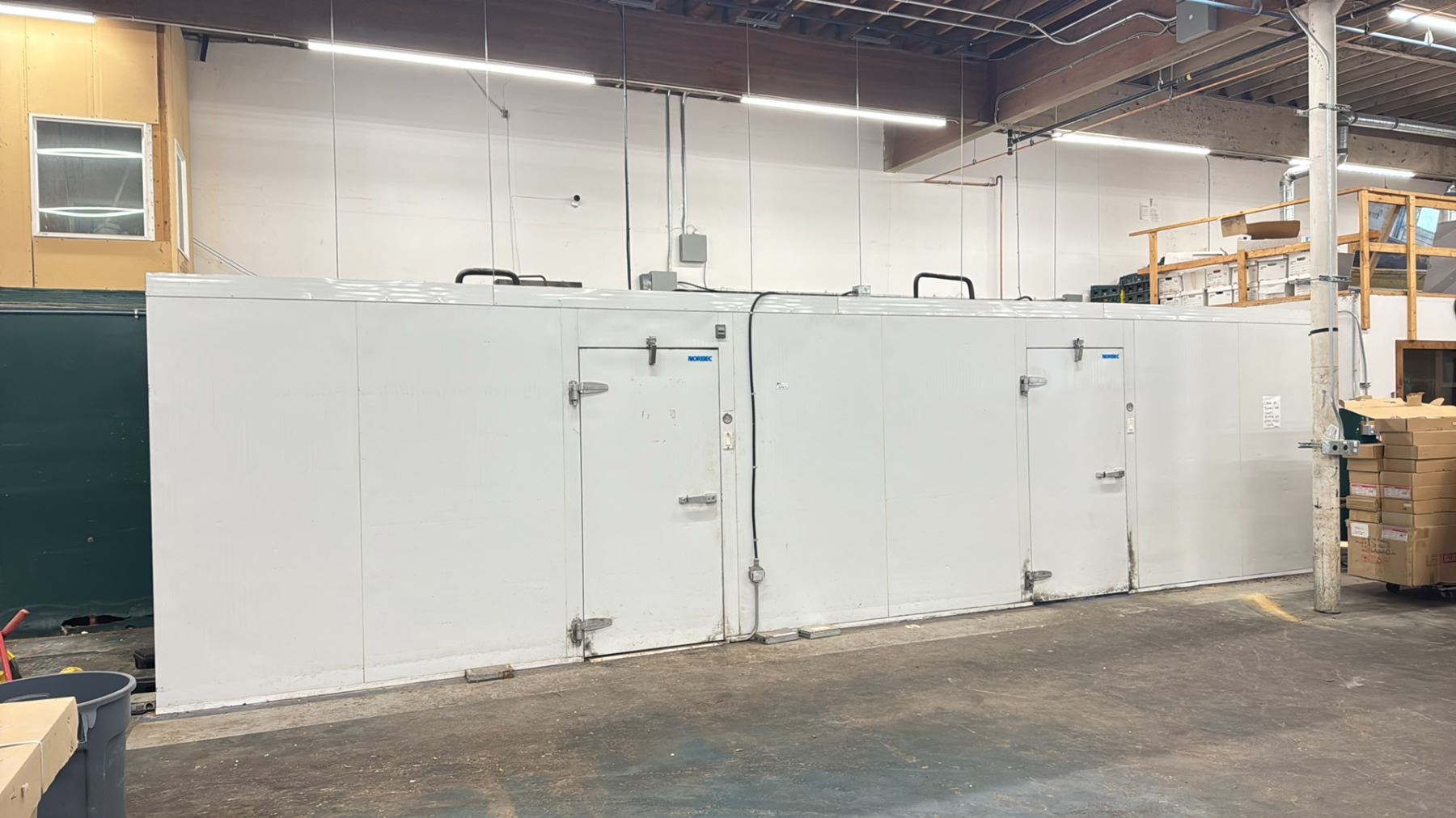 NORBEC COMMERCIAL WALK-IN COOLER AND WALK-IN FREEZER SIDE-BY-SIDE APPROXIMATELY 30 FEET WIDE **LOCATED IN NORTH VANCOUVER BUYER TO BE RESPONSIBLE FOR DISASSEMBLY AND REMOVAL** *NO PREVIEW FOR THIS ITEM, ANY QUESTIONS PLEASE CALL SAM 604-835-9755*