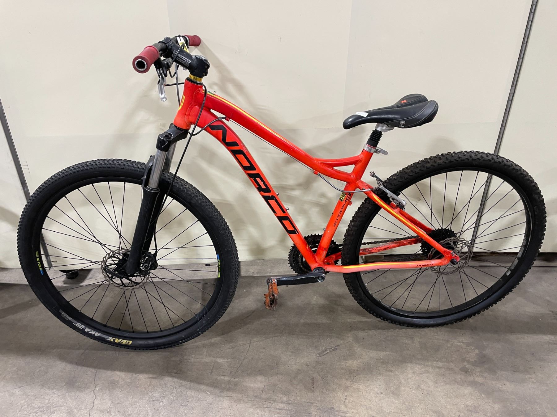NORCO STORM 9 ORANGE SINGLE SPEED NO SHIFTERS FRONT SUSPENSION * NEEDS REPAIR*