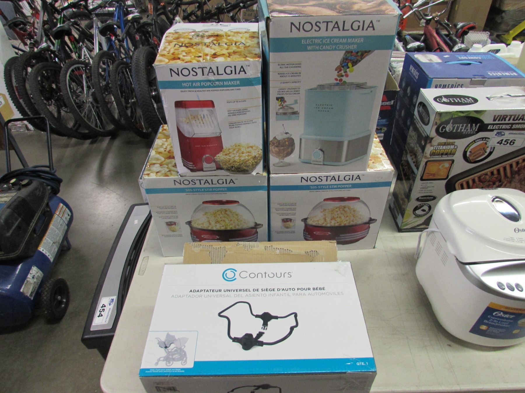 NOSTALGIA HOT AIR POPCORN MAKER, NOSTALGIA ELECTRIC ICE CREAM MAKER, 2 NOSTALGIA 50'S STYLE STIR POPPERS