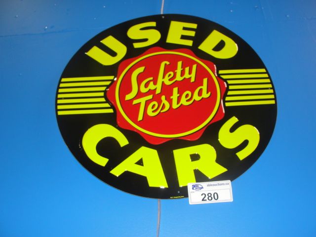 NOSTALGIC SAFETY TESTED USED CARS TIN ADVERTISEMENT SIGN