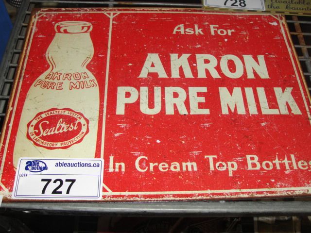 NOSTALGIC TIN ADVERTISEMENT SIGN - AKRON PURE MILK