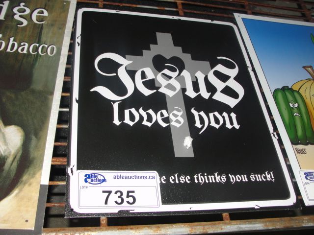 NOSTALGIC TIN ADVERTISEMENT SIGN - JESUS LOVES YOU