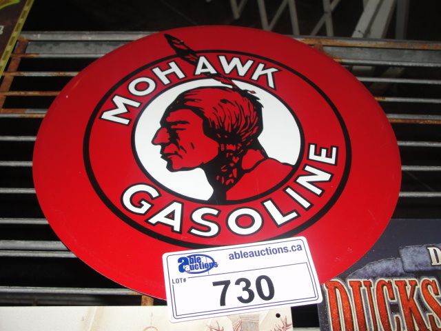 NOSTALGIC TIN ADVERTISEMENT SIGN - MOHAWK GASOLINE