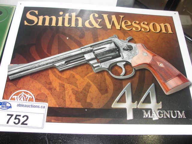 NOSTALGIC TIN ADVERTISEMENT SIGN - SMITH AND WESSON 44 MAGNUM