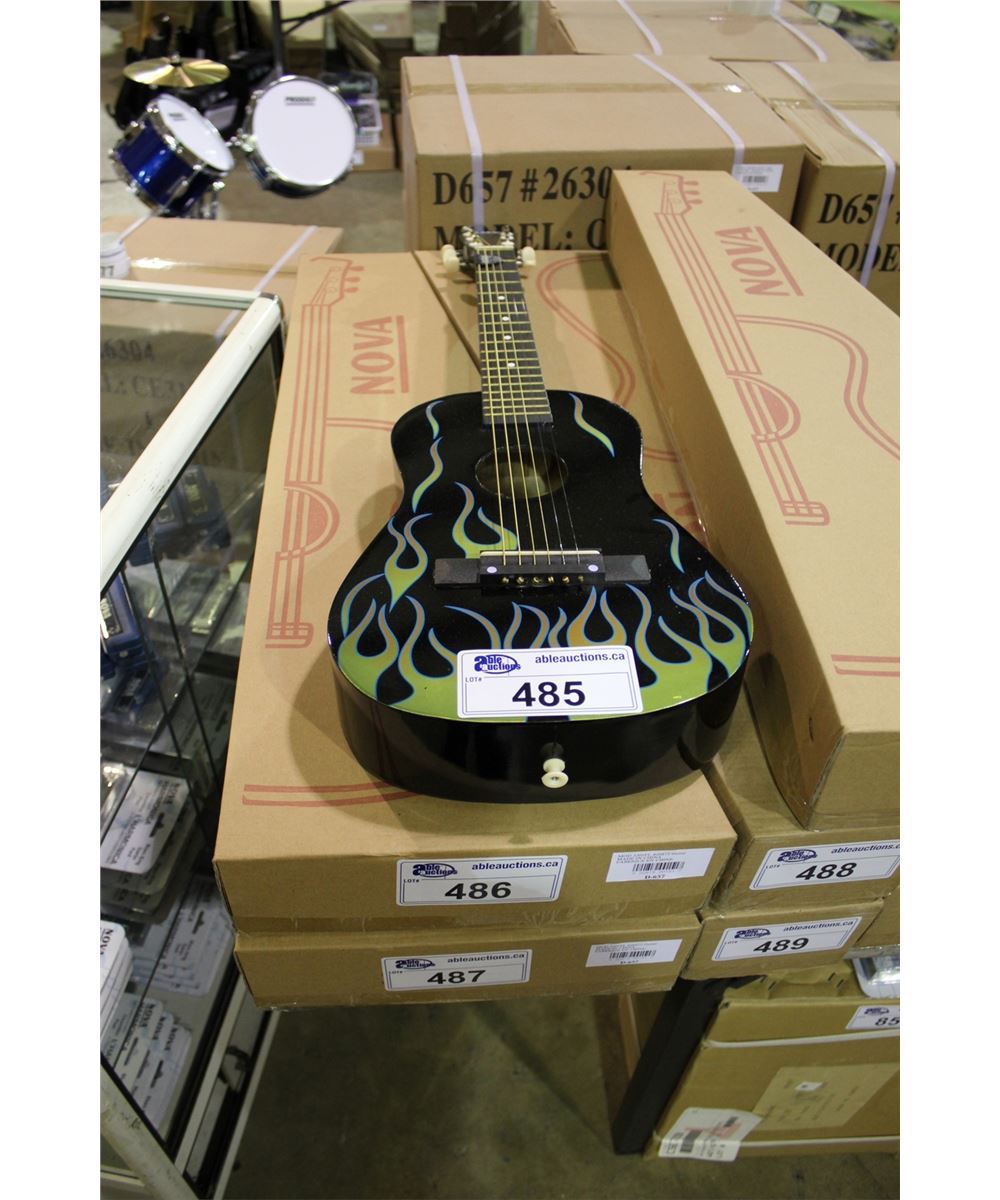NOVA BLACK WITH FLAMES 3301FL 30  TRAVEL SIZE ACOUSTIC GUITAR