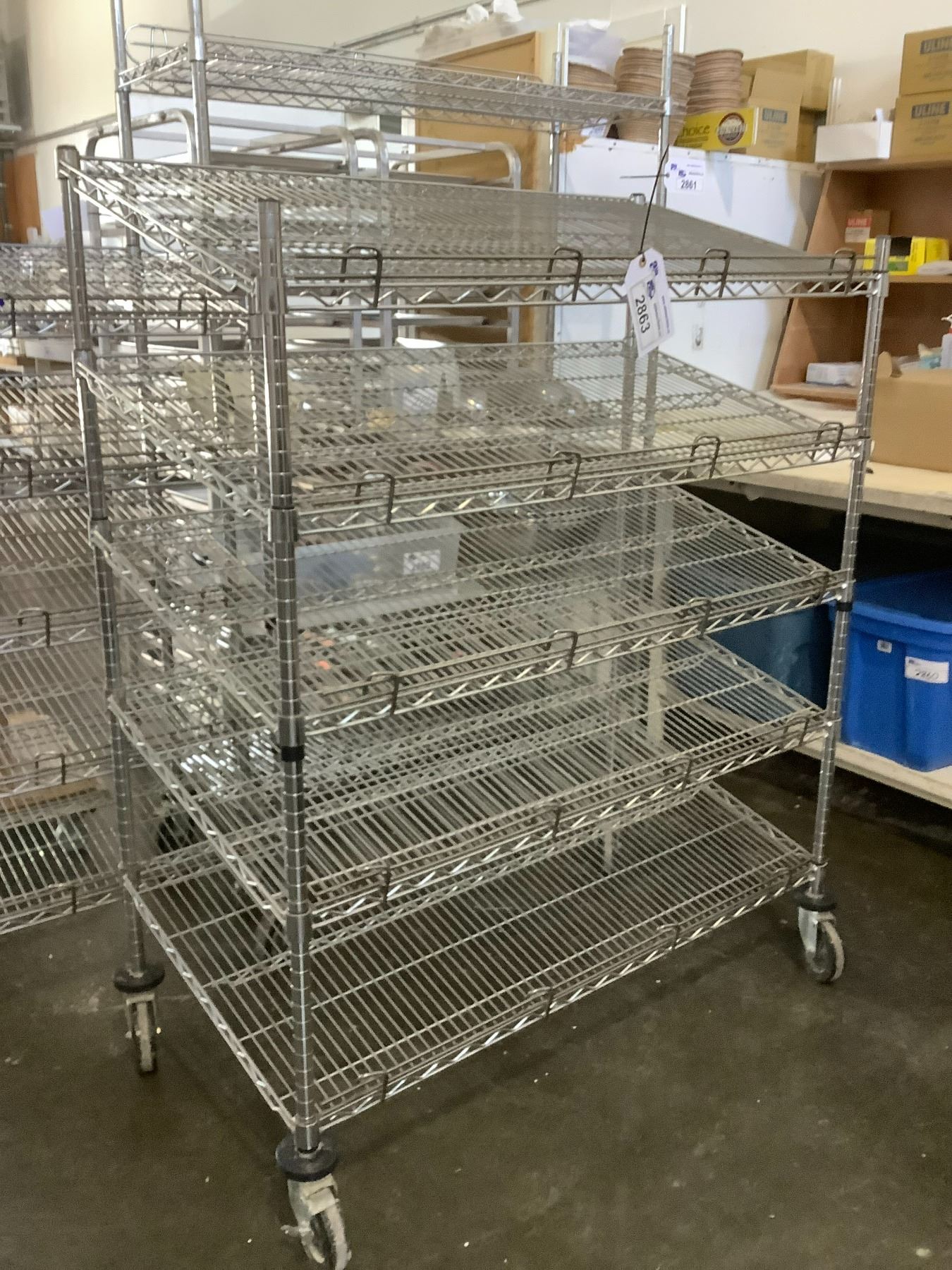 NSF STAINLESS STEEL 5 TIER ANGLED MOBILE RACK 48"X24"X56"H