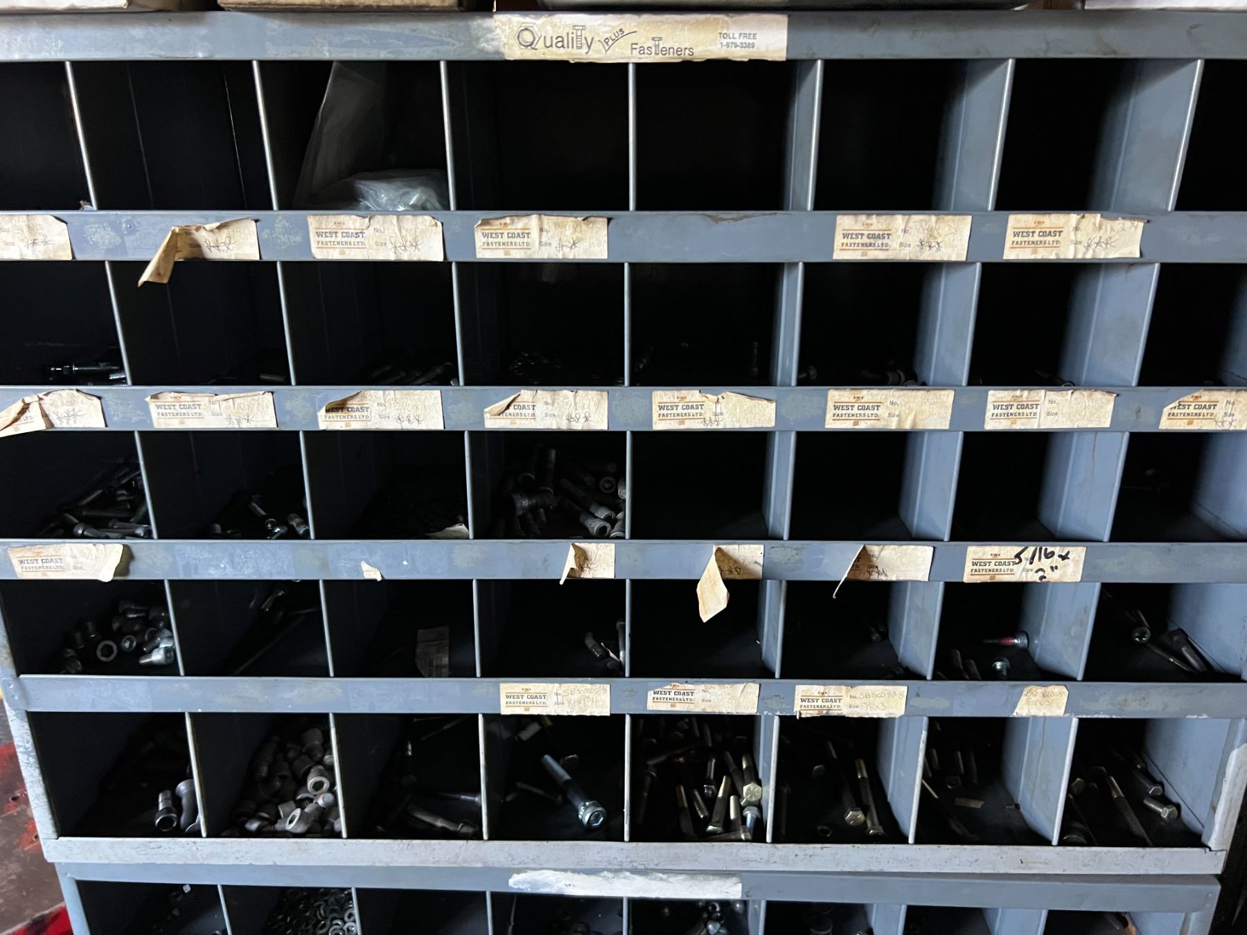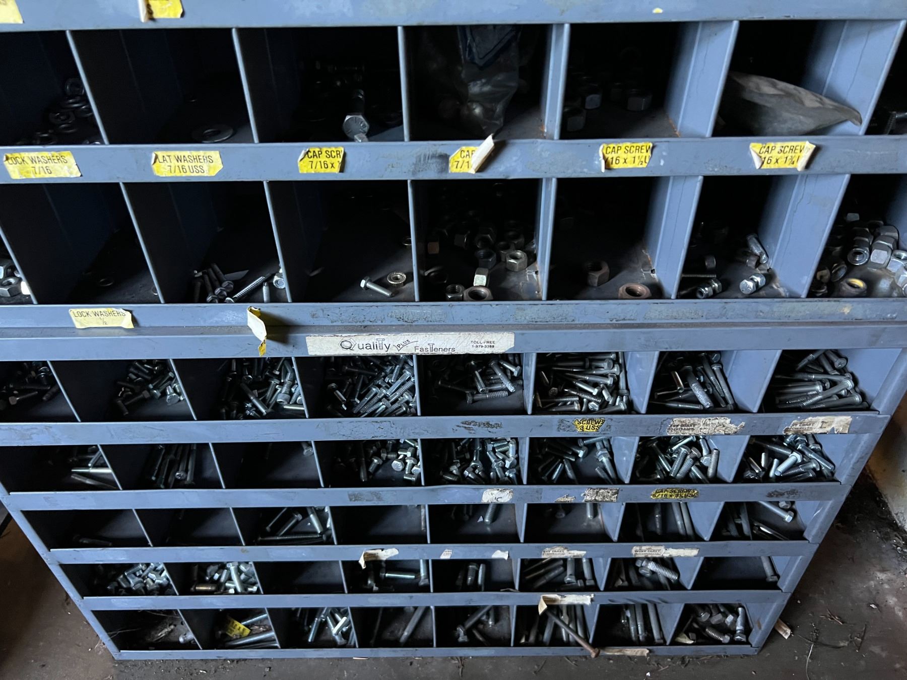 NUTS & BOLTS STORAGE RACK (34" X 67") 120 COMPARTMENTS - INCLUDES CONTENTS