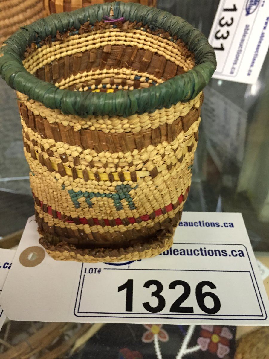 NUU-CHAH-NULTH BASKET WITH DEER DESIGN 4" HIGH