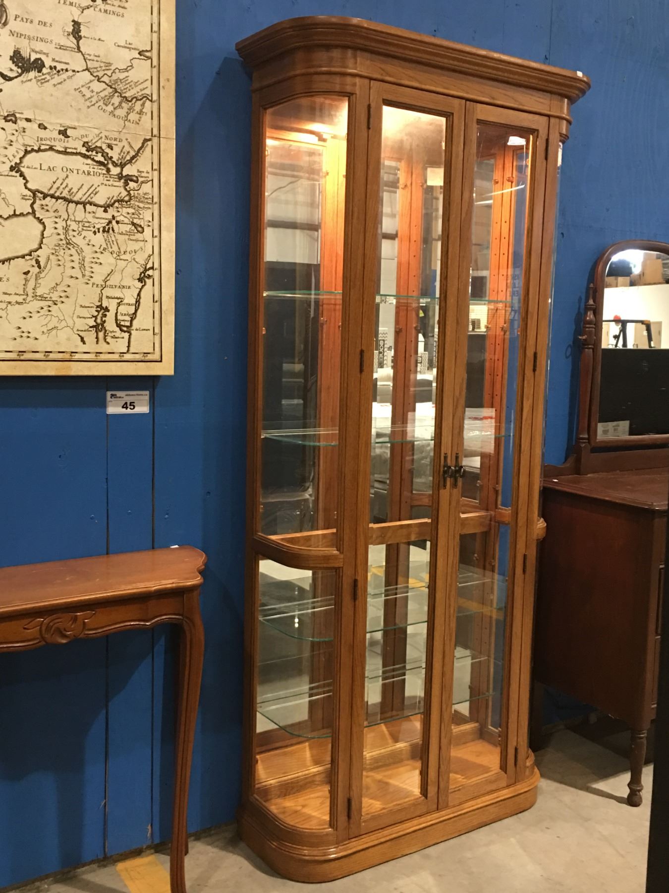 OAK BEVELED GLASS FRONT WITH CURVEX GLASS SIDES DISPLAY CABINET