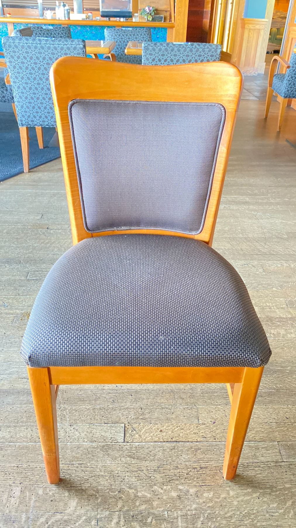 OAK DINING ROOM CHAIR WITH CUSHION GREEN SEAT AND BACK FABRIC