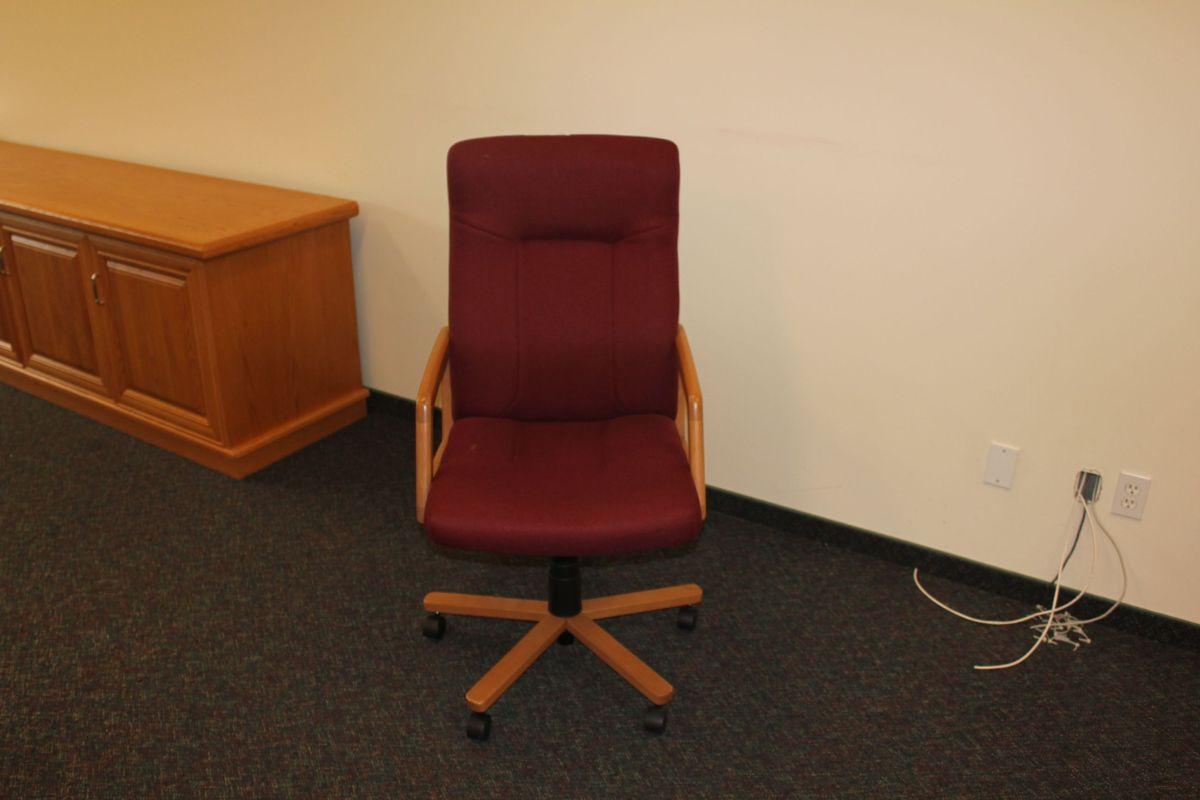 OAK FRAME BURGANDY HIBACK EXECUTIVE CHAIR