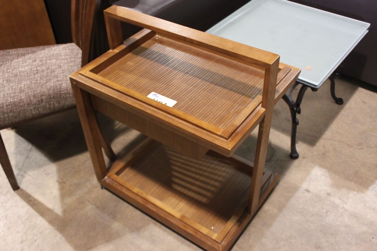 OAK SLAT STYLE MOBILE BAR CABINET
