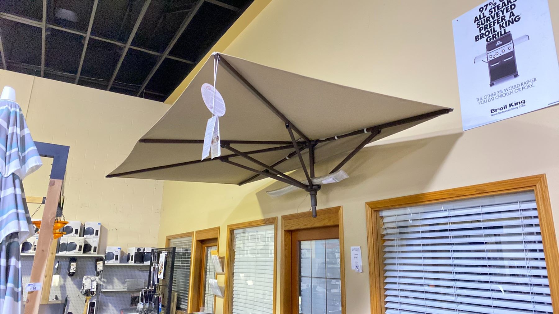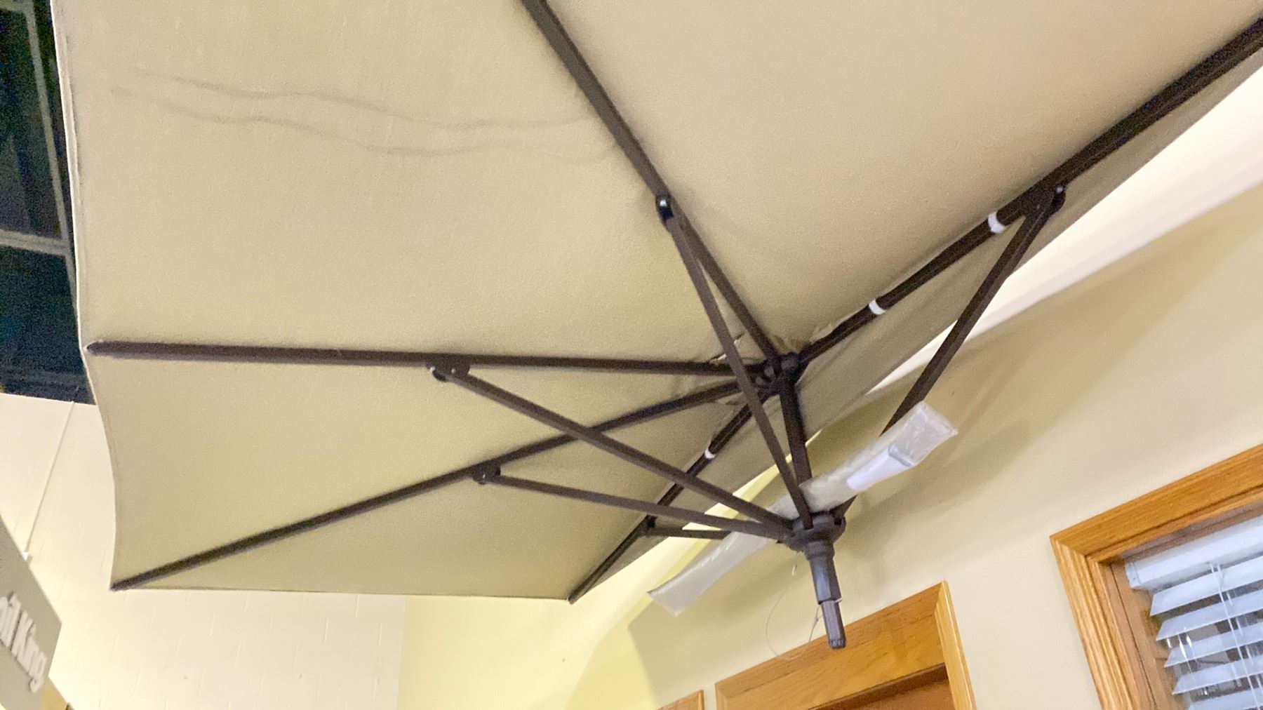 OBRAVA ENTRYWAY UMBRELLA. WOULD BE GREAT TO KEEP SUN FROM BEATING IN YOUR PATIO DOORS SHOWN IN BRONZE SAND