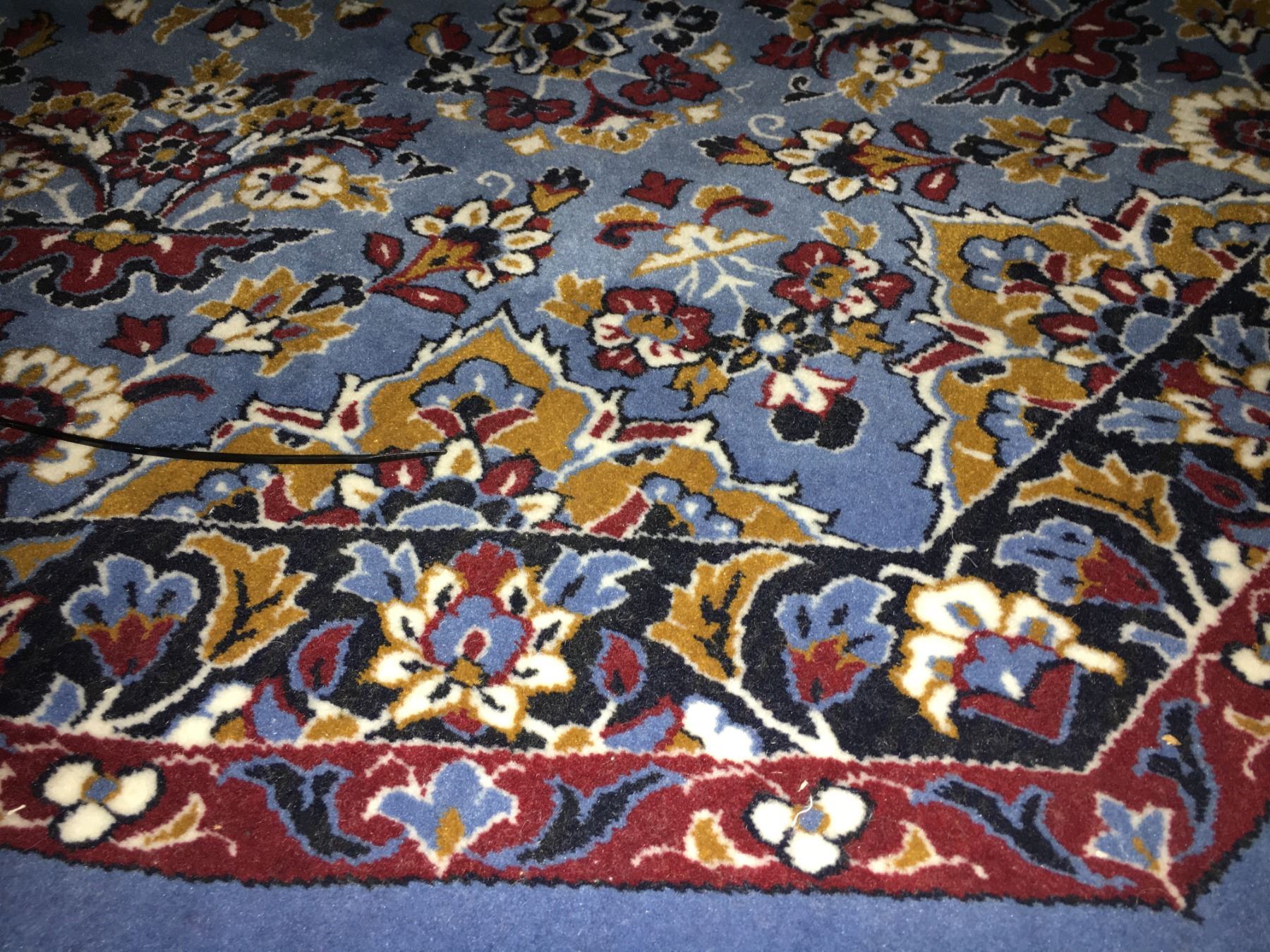 OCTAGON SHAPED WOOL 6'7" X 6'7" BLUE, WHITE, RED MACHINE WOVEN AREA RUG GALLERY PRICE $600