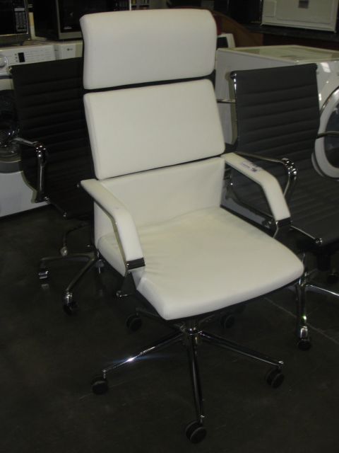 OFF WHITE AND CHROME GAS LIFT EXECUTIVE OFFICE CHAIR