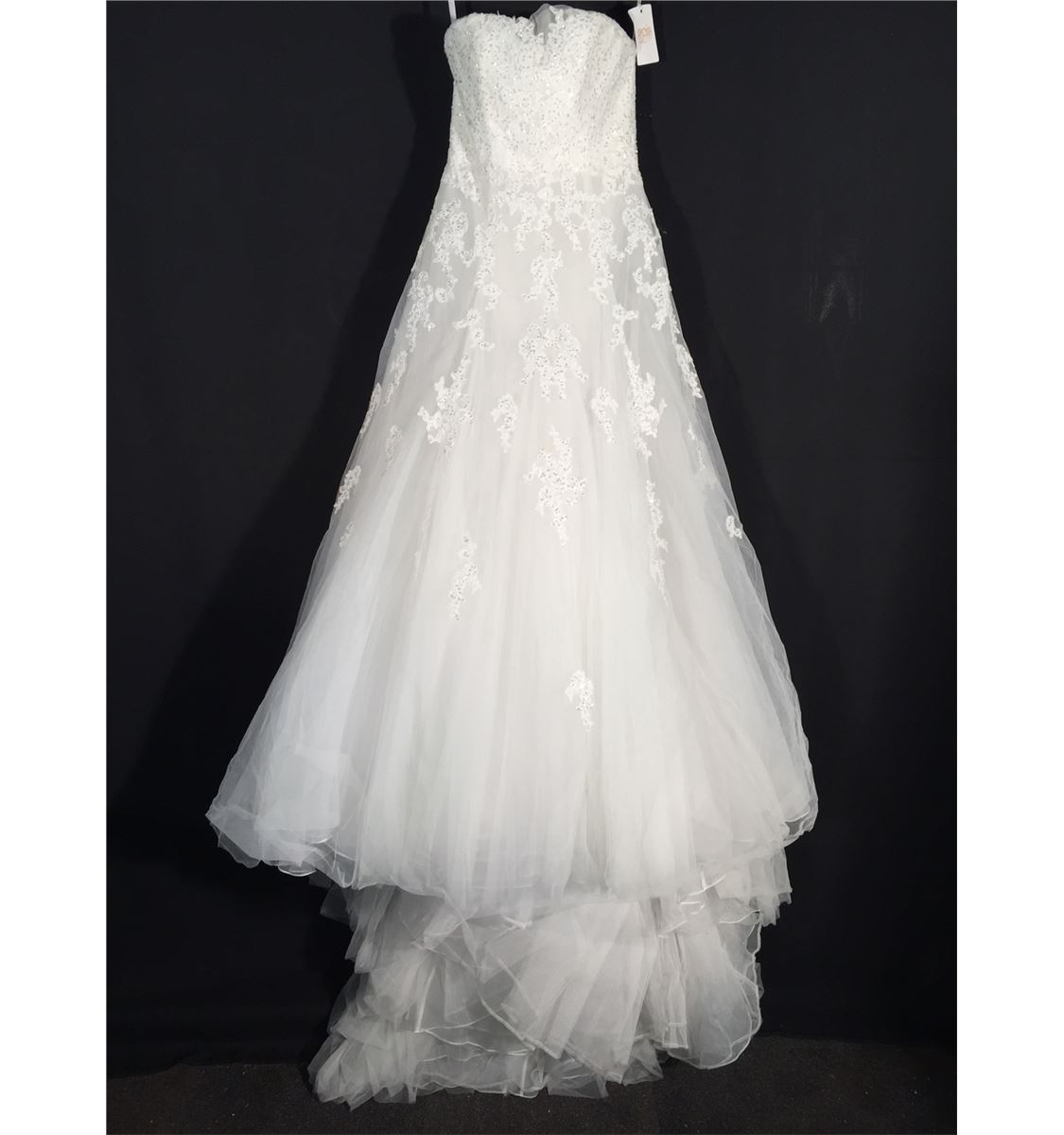 OFF WHITE LACE OVERLAY LOTS OF SPARKLE WEDDING DRESS SIZE 14