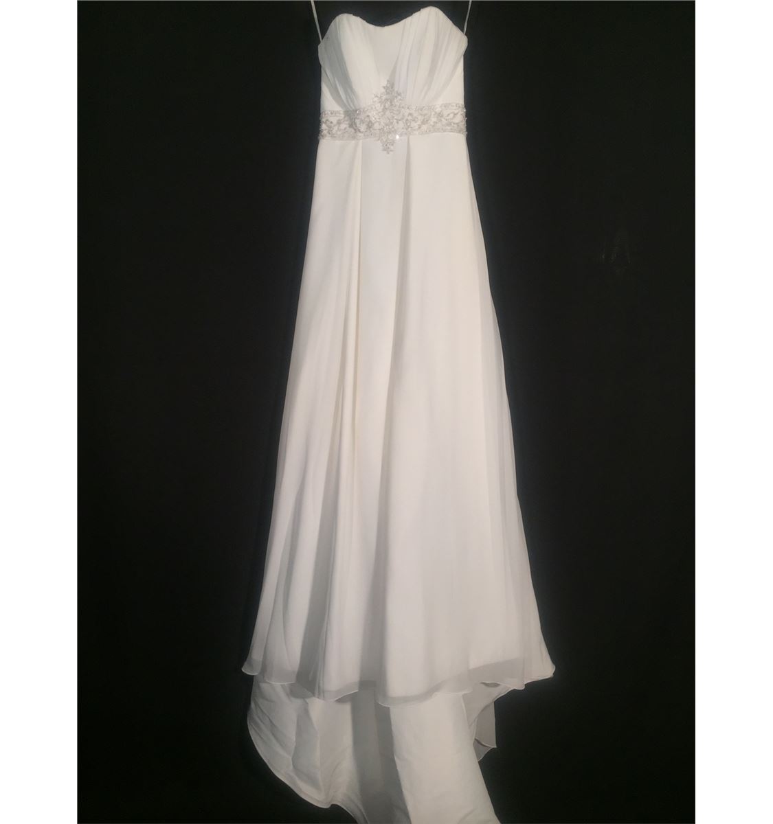 OFF WHITE, PLEATED, BEADED TOP WEDDING DRESS W/ TRAIN, SIZE 6