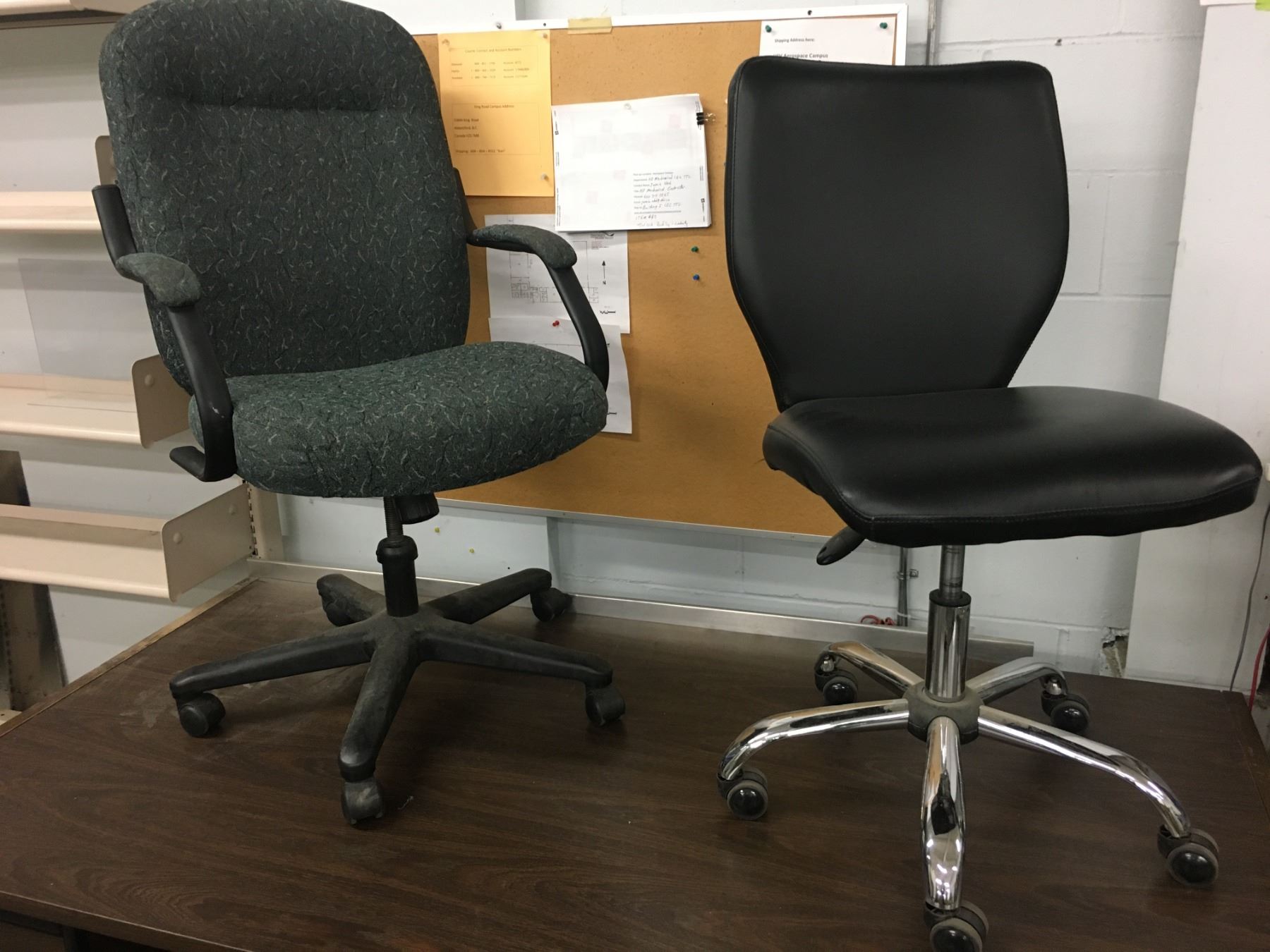 OFFICE DESK WITH 2 CHAIRS & METAL 6FT BOOK SHELF UNUT