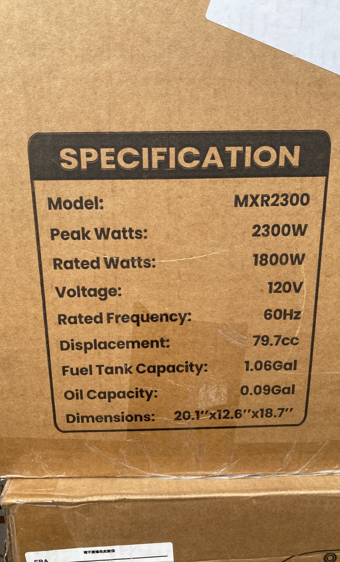 OHV ENGINE ( MXR2300 ) PORTABLE INVERTER GAS POWERED GENERATOR WITH A 1.06 GALLON FUEL CAPACITY *IN BOX*