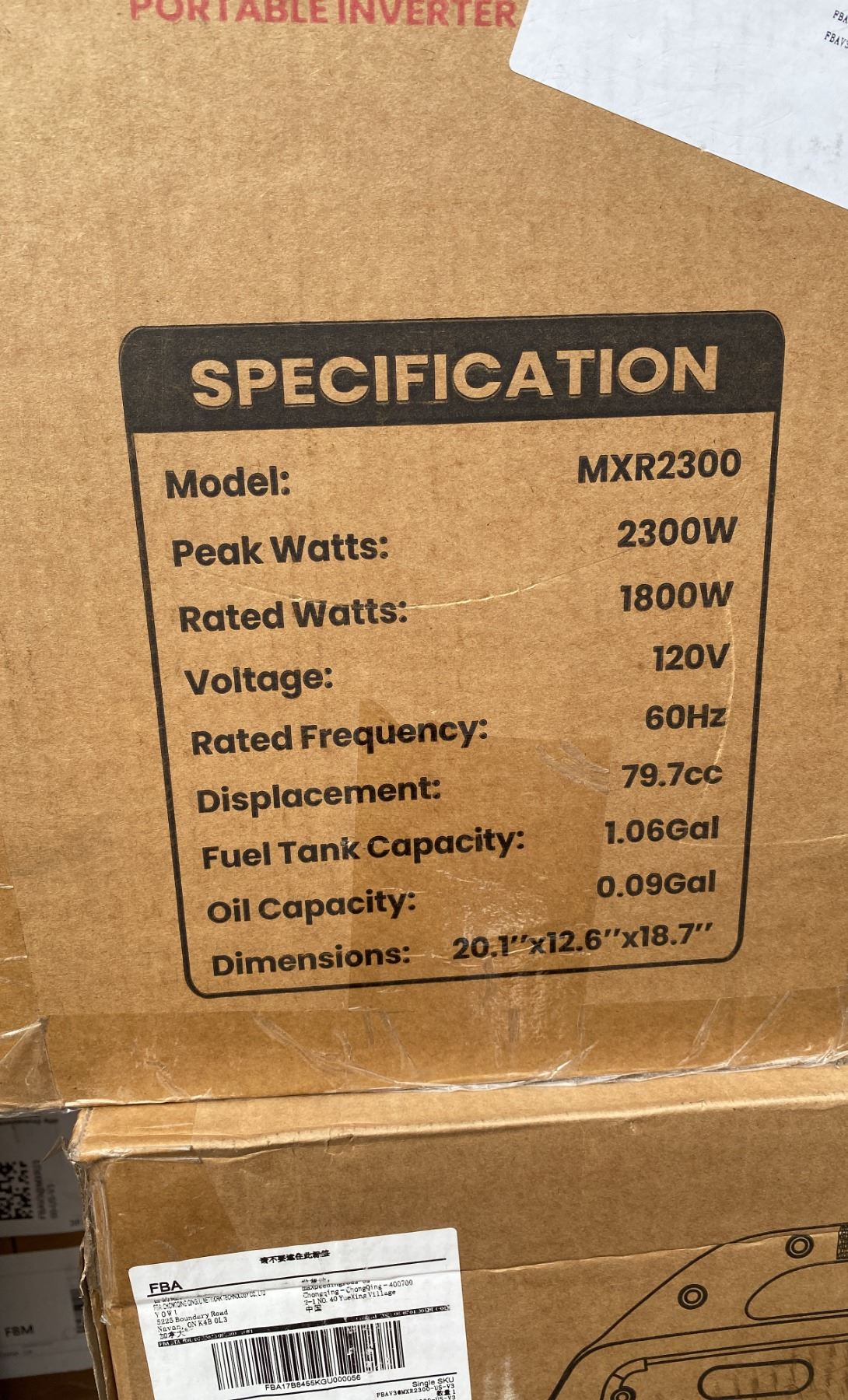 OHV ENGINE ( MXR2300 ) PORTABLE INVERTER GAS POWERED GENERATOR WITH A 1.06 GALLON FUEL CAPACITY *IN BOX*