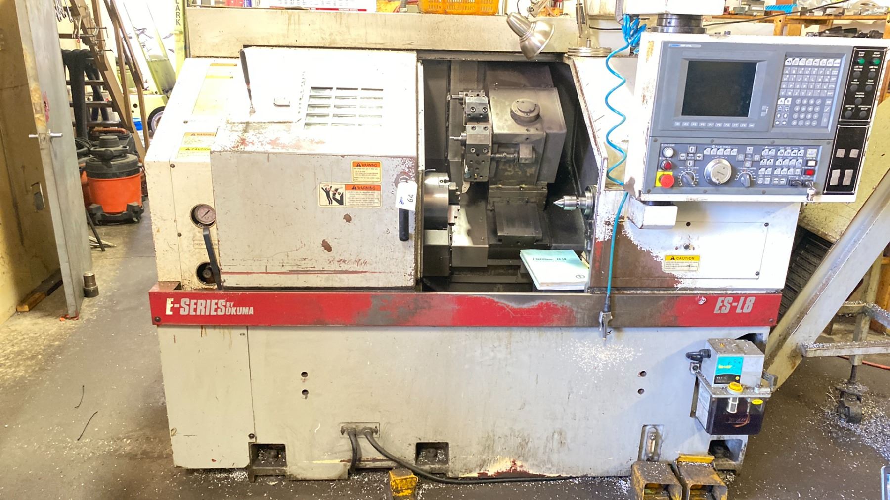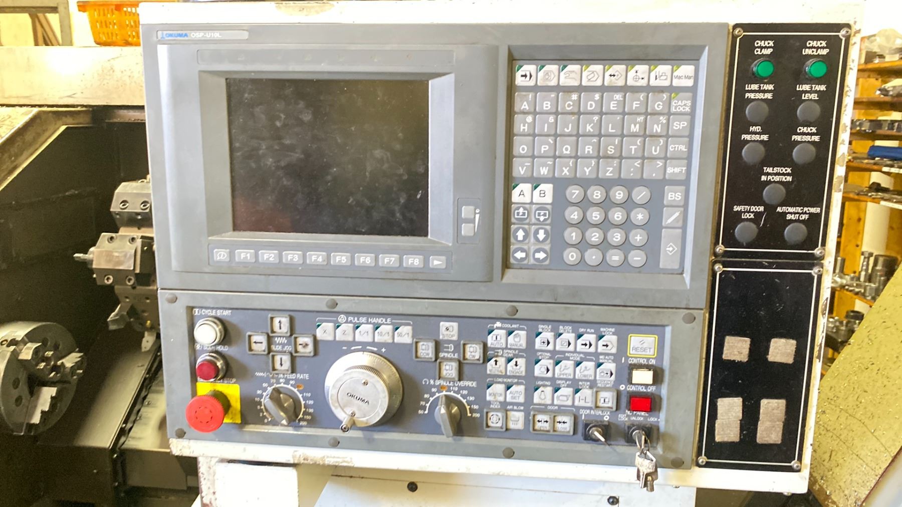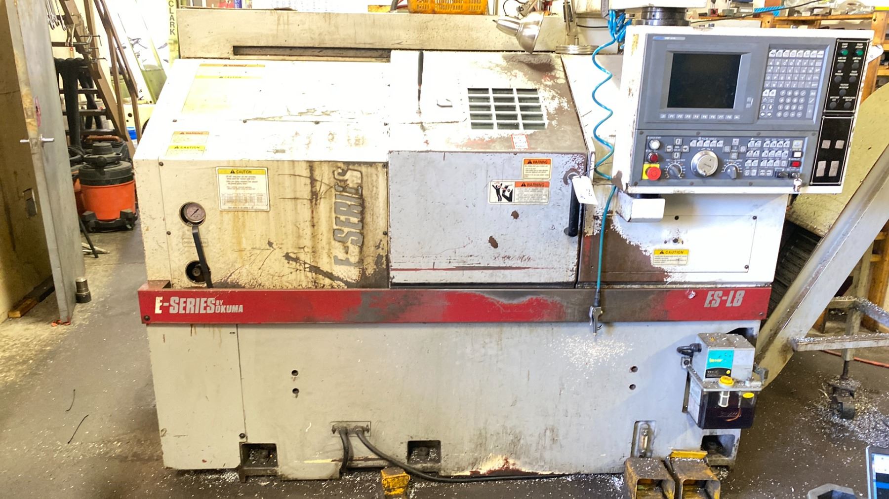 OKUMA ES-L8 PROGRAMABLE LATHEN OKUMA OPS U10L WITH SATSE CONVEYOR COMES WITH METAL SHOP CART FULL OF VARIOUS PARTS CHUCKS SPACER FOR UNIT **REMOVAL OF THIS PIECE REQUIRES HIAB/CRANE LIFT AND HEAVY MOVING SKATES** * MUST HAVE PROPER TOOL'S AND EQUIPMENT FOR REMOVAL* *REQUIRE COOLANT REMOVAL*