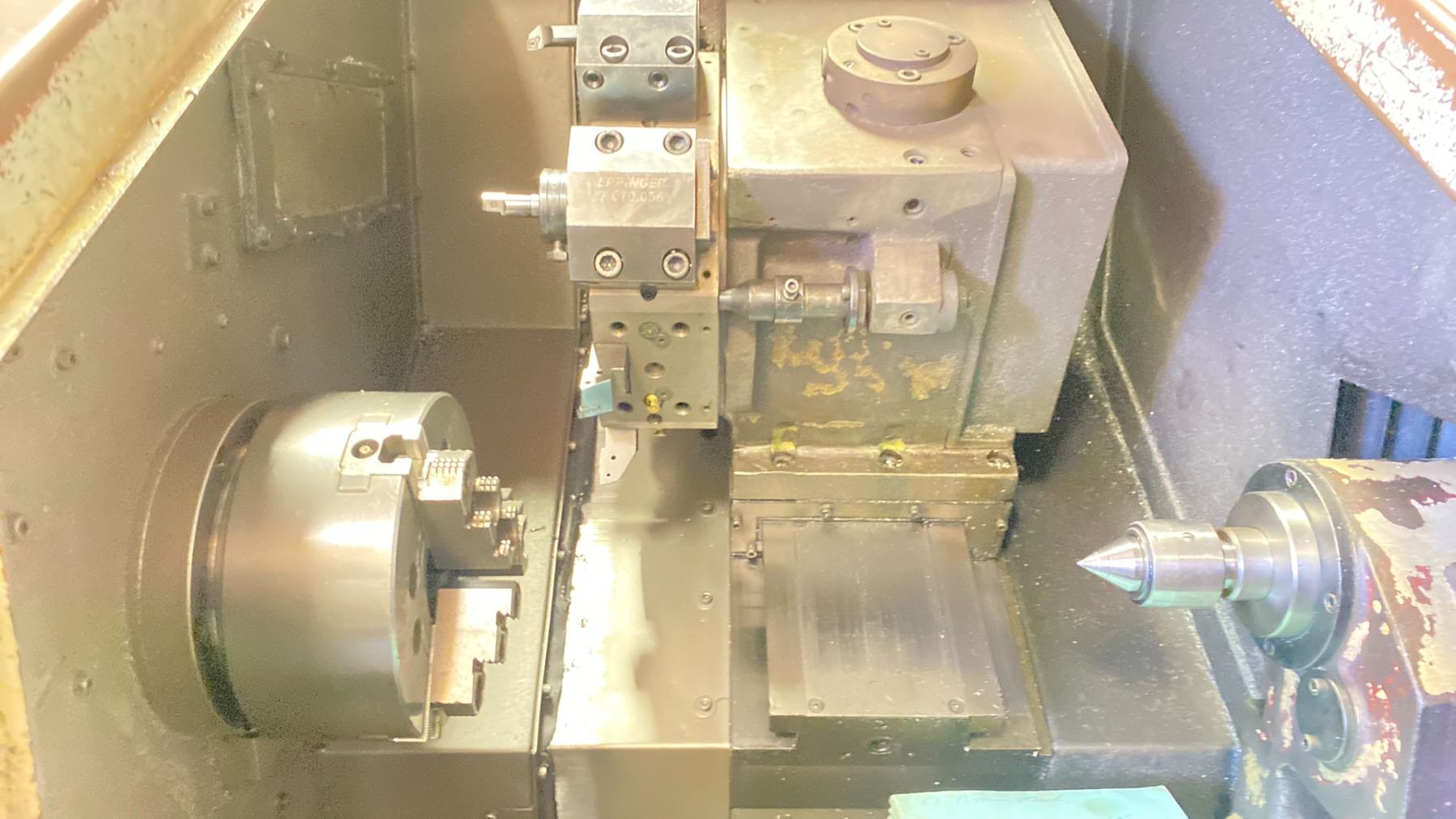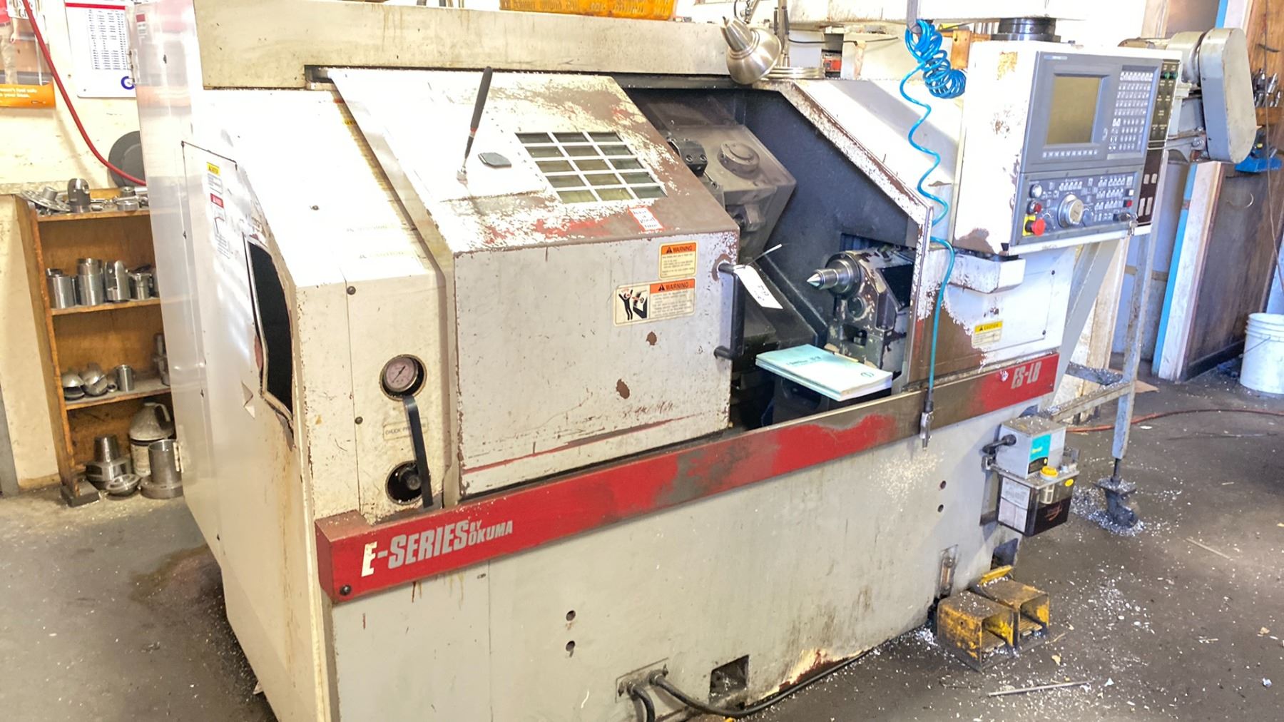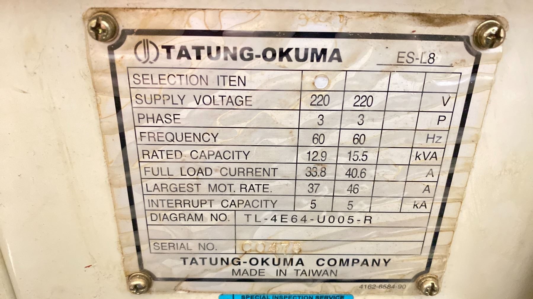 OKUMA ES-L8 PROGRAMABLE LATHEN OKUMA OPS U10L WITH SATSE CONVEYOR COMES WITH METAL SHOP CART FULL OF VARIOUS PARTS CHUCKS SPACER FOR UNIT **REMOVAL OF THIS PIECE REQUIRES HIAB/CRANE LIFT AND HEAVY MOVING SKATES** * MUST HAVE PROPER TOOL'S AND EQUIPMENT FOR REMOVAL* *REQUIRE COOLANT REMOVAL*